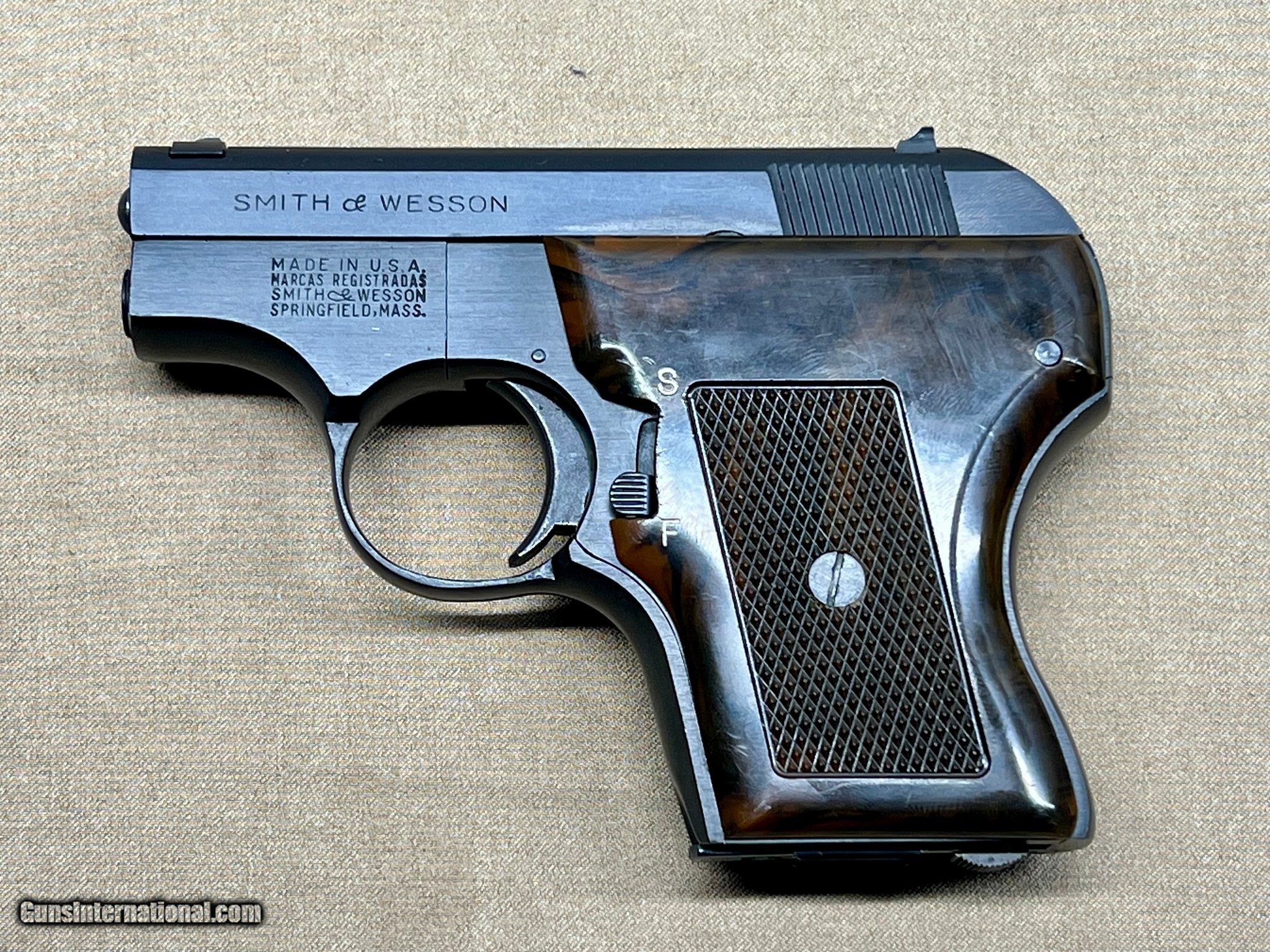 Description: Guns Listing ID: 604382 ***USED firearm please see photos for detail*** The Smith & Wesson Model 61-2 is a compact, semi-automatic rimfire pistol chambered in .22 Long Rifle. Part of S&W’s early stainless-steel pistol lineup, the Model 61 series was introduced in the early 1970s and is often recognized for its small size, clean lines, and distinctive stainless finish. The 61-2 variant features a stainless-steel slide and frame, a fixed barrel, and a single-action trigger system. It is typically equipped with simple fixed sights and checkered grips, emphasizing practicality and durability over ornamentation. Its lightweight construction and compact proportions reflect Smith & Wesson’s focus at the time on producing modern, corrosion-resistant rimfire pistols. Today, the Model 61-2 is best known as a collectible firearm, appreciated for its place in Smith & Wesson history and as an example of early stainless-steel handgun design. Overall condition excellent. Includes original box and paperwork, as well as factory carrying pouch. -AB Manufacturer: SMITH & WESSON Model: MODEL 61-2 Caliber Info: .22LR/.22MAG Condition: Used - Non-Certified Barrels: 2" BARREL Action: SEMI AUTOMATIC Finish: blued Price: $550.99 Contact Seller |