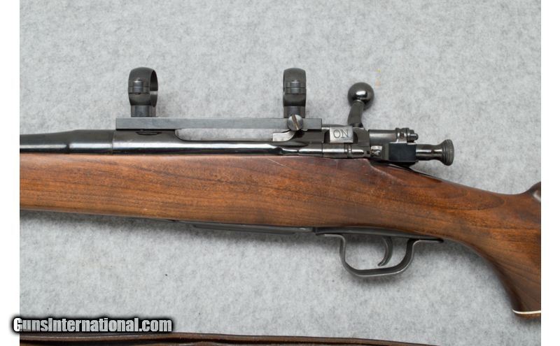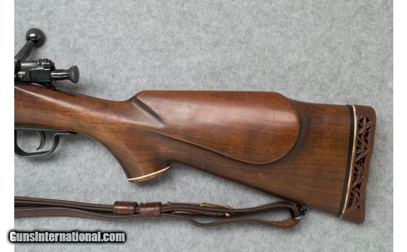 Description: Used SOLD Caliber Info: .30-06 SPRG Metal Condition: Very Good: Highly Polished Bluing; some light corrosion on barrel top Wood Condition: Good overall: Field scratches Bore Condition: Good Barrels: 19 1/4 Triggers: Grooved, blued steel Stock: Smooth pistol grip walnut with Monte Carlo Stock Dimensions: LOP - 13 1/2 Butt Pad: Brown rubber pad Weight: 7 lbs. 3 oz. (with rings & sling) Sights: None: Scope Rings Extras: Redfield Scope Rail / Rings & Sling Item Location: Sun Prairie, WI |