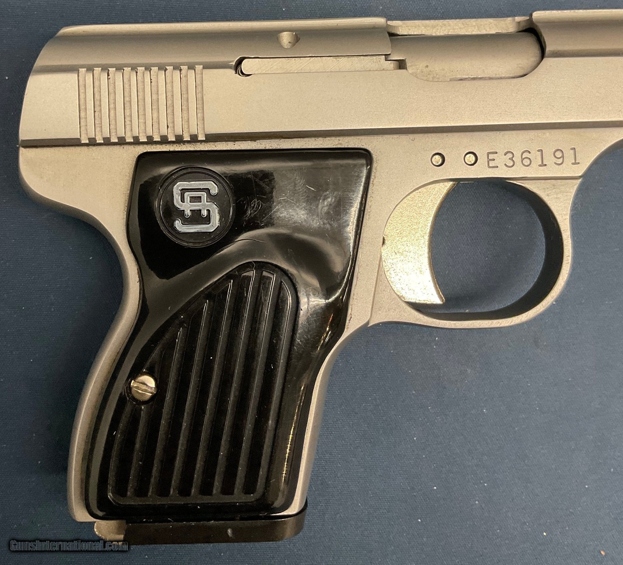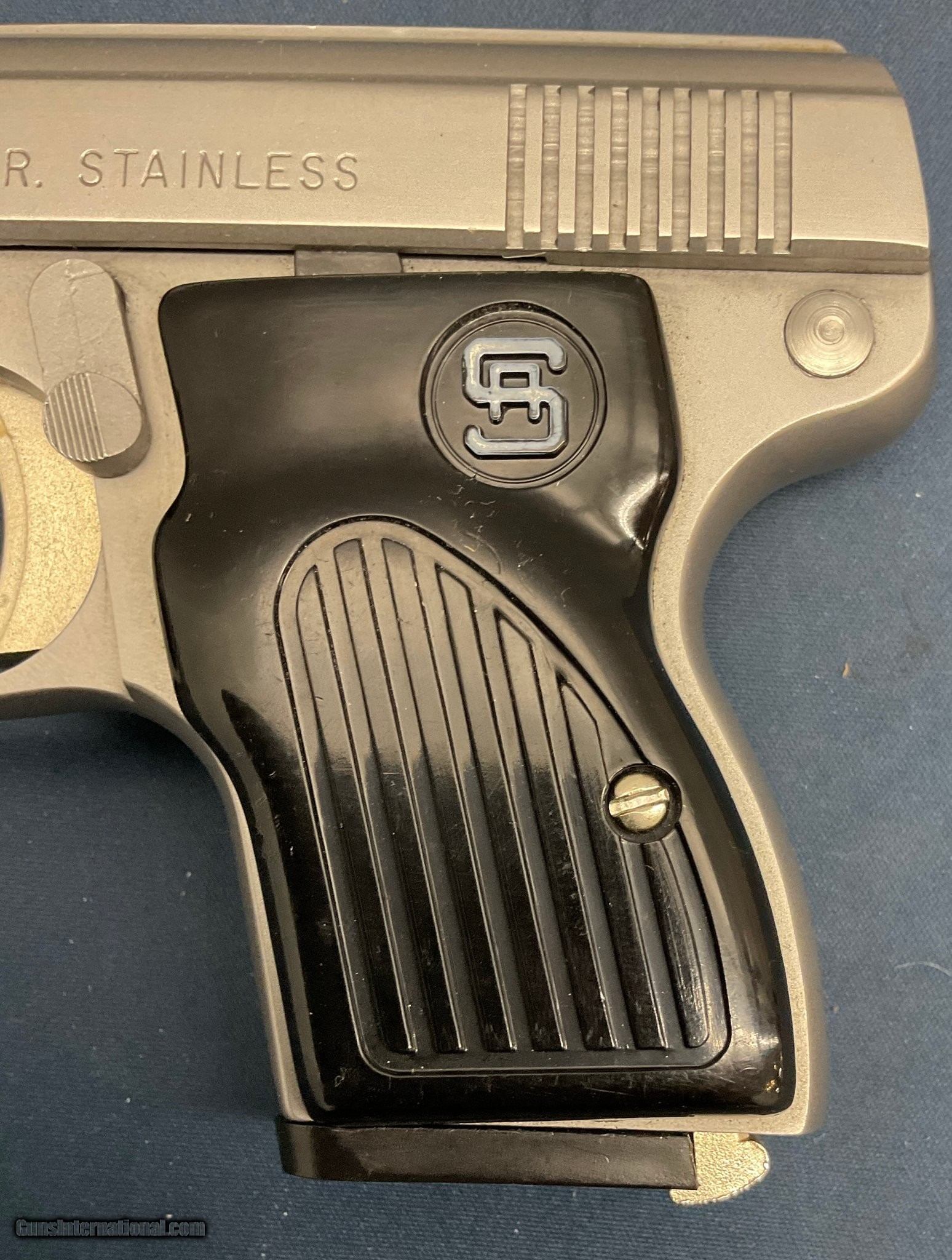 Description: Guns Listing ID: 622660 Sterling Arms, founded in 1967 in New York, produced the compact .22 LR pocket pistols (such as the Model 302/300S) throughout the 1970s and early 1980s. Known as \"Saturday Night Specials,\" these budget-friendly guns featured stainless steel slides and frames, earning a reputation for being relatively durable, though often plagued by reliability issues. The company operated in Buffalo and later Lockport before closing in 1983. Manufacturer: STERLING Model: 22 lr stainless Caliber Info: .22 LR Condition: Used - Non-Certified Barrels: 2.5" BARREL Action: SEMI AUTO Finish: polished stainless Price: $250.99 Contact Seller |
