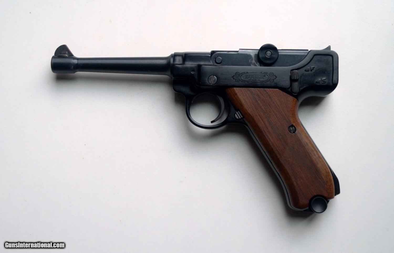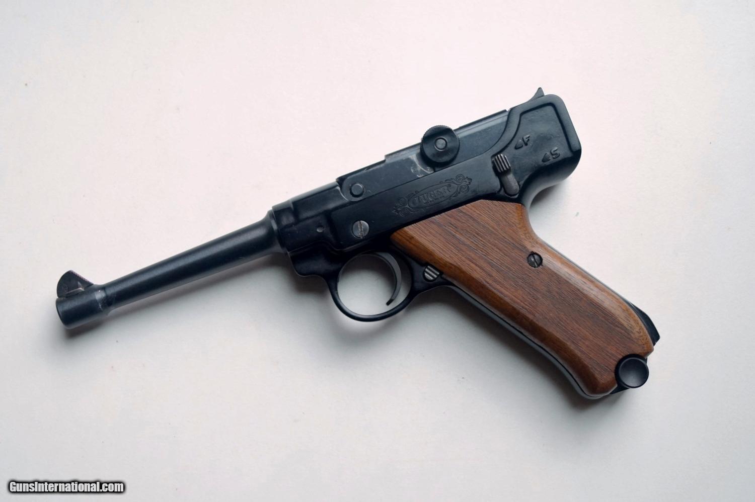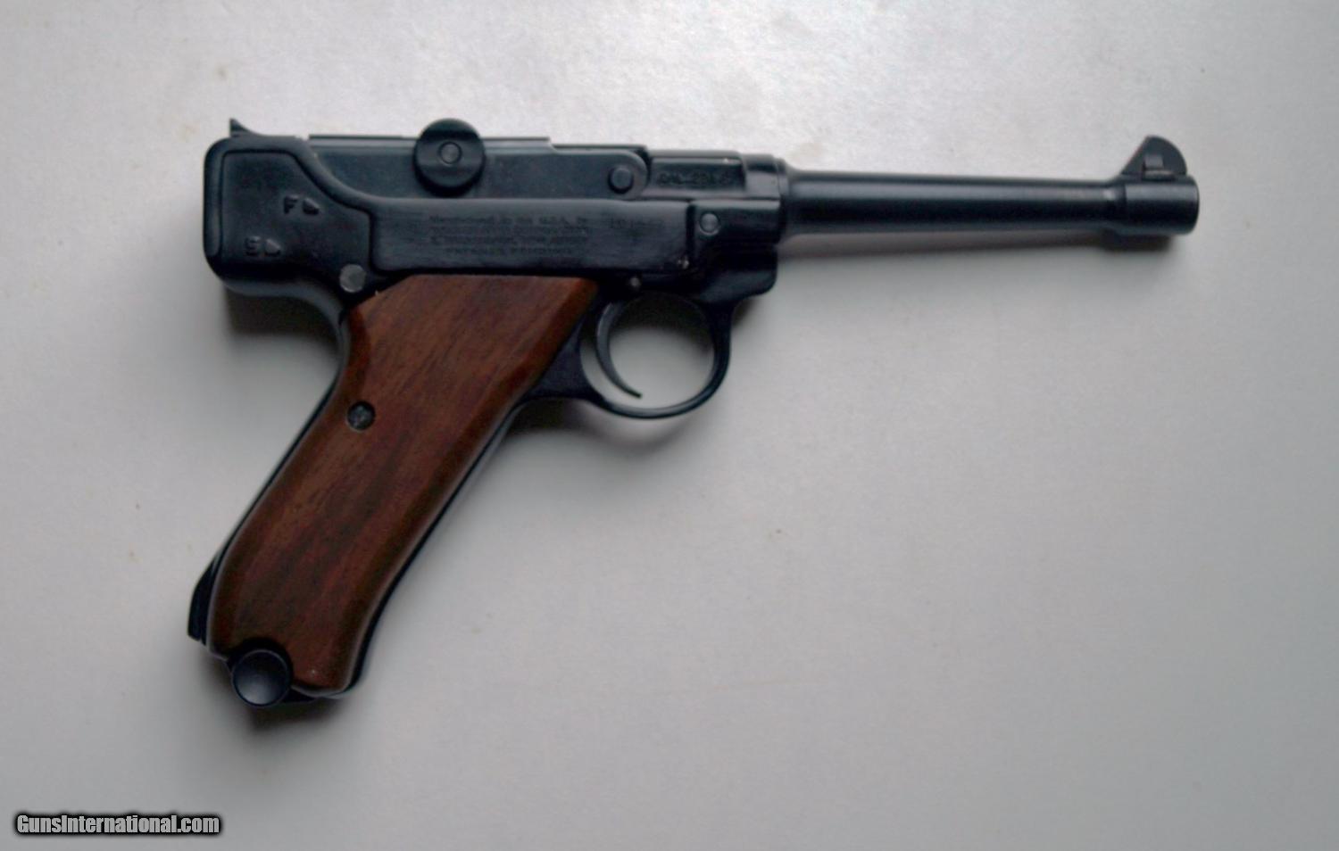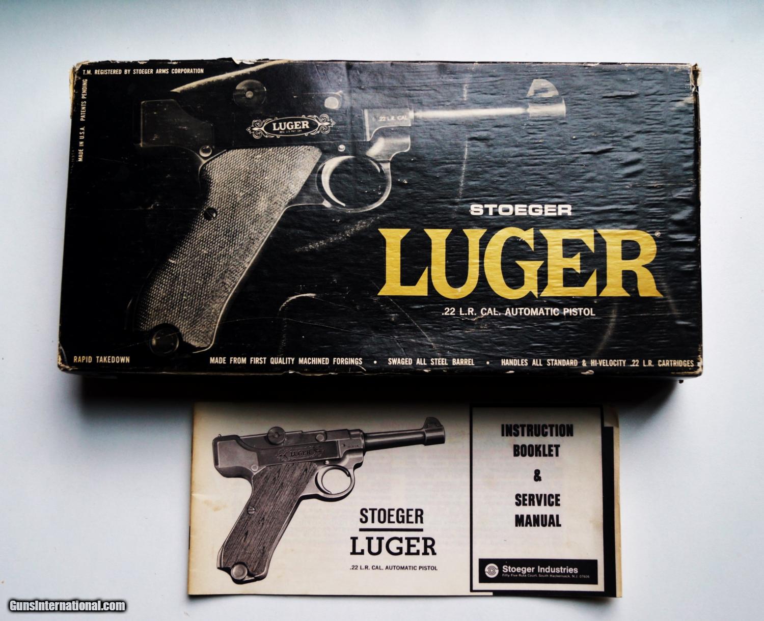 Description: THIS IS A STOEGER LUGER, / ALUMINUM FRAME, .22LR. THE LUGER IS IN VERY GOOD CONDITION. ALL ORIGINAL, VERY GOOD BORE AND GRIPS, MECHANICALLY CORRECT AND TIGHT. A VERY NICE STOEGER LUGER THAT WOULD MAKE A NICE TARGET OR SMALL GAME PISTOL. NOTE: THE LUGER COMES WITH THE ORIGINAL BOX, INSTRUCTION MANUAL AND PAPERS. SOLD |