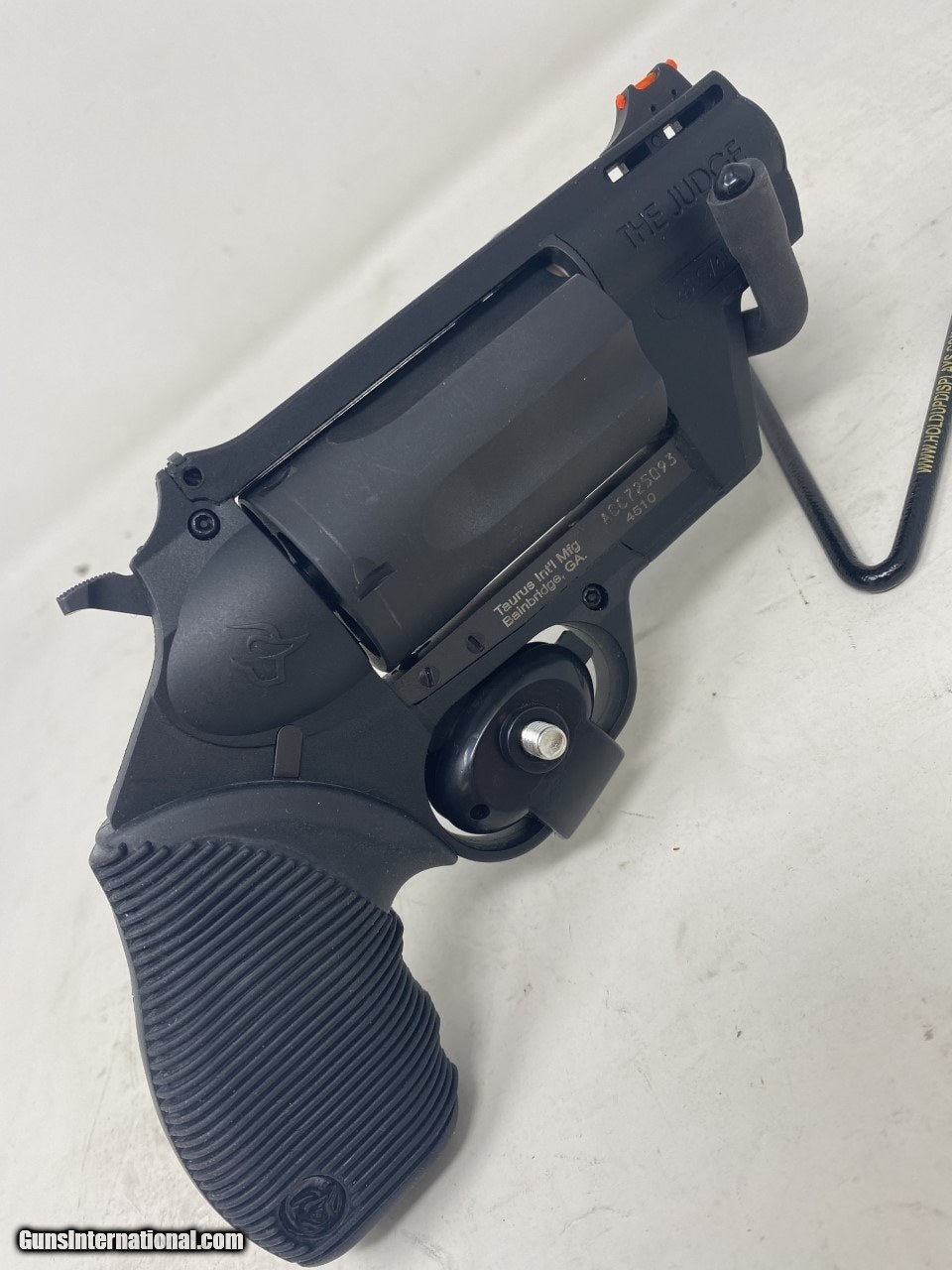 Description: Guns Listing ID: 511798 REF(A21001942) Caliber 45 ACP / 410 GA Finish BLACK Capacity 5 ROUNDS Weight NOT SPECIFIED Action REVOLVER Frame Material POLY Slide Material NOT SPECIFIED Barrel Length 2\" Receiver Material NOT SPECIFIED Receiver Finish NOT SPECIFIED SOLD Manufacturer: TAURUS INTERNATIONAL MFG., INC. Model: THE JUDGE Caliber Info: 410/45 COLT (LC) Condition: Used - Non-Certified Barrels: 2 BARREL Finish: BLACK |
