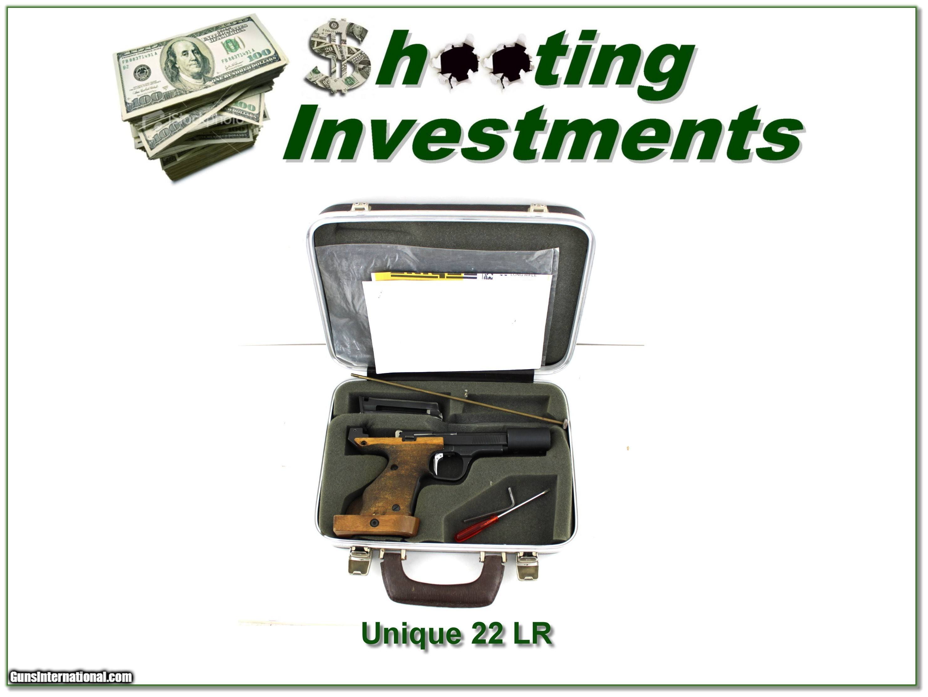 Description: This is a French made Unique Target 22 pistol. It is in excellent condition and comes as seen in factory case with papers. I am selling this one on consignment and as such lay-a-way can’t be used. It does of course have the standard 3-day inspection. Shipping and insurance is $39. Please email me with any questions or larger pictures. (Consign your quality firearms with Shooting Investments for only 12%! Let me know if you have any you would like to sell!) 25-0177 Payment: Payment is by Money Order, Cashier’s Check or Personal Check. I can now also accept Credit Cards (MasterCard, Visa, Discover & American Express) with a 3% convenience fee. Shipping: The shipping charge will be listed in each description. It is $49 for most firearms. Some heavy guns or those insured for over $2000 will be higher. Shipments to Alaska and Hawaii are higher because air shipment is required. Most firearms are shipped on Tuesday and Thursday and usually in 5 days of receipt of payment. We package all shipments carefully and insure them. Optics are shipped Priority Mail and most other non-firearm shipments are shipped First Class. Returns: Our return policy is simple. If for any reason you are not pleased with your purchase, you may return your item for a full refund of purchase price. Ammunition cannot be returned. It is important to us that you are happy. Guns cannot be fired or dissembled before returning them and they must be returned in the same condition as received. Notification of a return must occur within 3 days of receipt at your dealer. Shipping, convenience and dealer fees are not refundable and are the responsibility of the buyer. Lay-a-way: If needed, we offer a 60 day lay-a-way option on most firearms. It is 1/3 now, 1/3 in 30 days and 1/3 in 60 days. Lay-a-way firearm sales are final and cannot be returned. If a lay-a-way is not completed the first payment cannot be refunded. Consigning your firearms with Shooting Investments: We will help you get top dollar for your firearms. While most local guns shops charge 20% or more, our fee is only 12% with a minimum of $100. At your local gun shop it might take months to sell. Selling on-line provides instant access to thousands of interested buyers. You won’t find any other on-line dealer willing to sell your firearms for only 12% or listing every gun on 3 separate s. Selling through an House typically costs the seller 15% and the buyer an addition 15% (so 30%) and you have to wait several months to sell and longer to receive funds. If properly priced, we will sell your firearms within a few weeks. Send us an email or give us a call and we’ll explain how easy it is for you to get top dollar. Trading: Trading for us is really just buying your gun to re-sell. If you have a gun you want to trade, please email a picture and we will let you know what we can give for it. You will always get more if we sell it for you on consignment. Price: $399.00 Contact Seller |