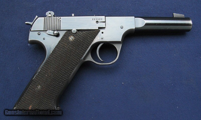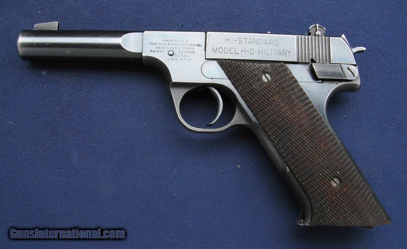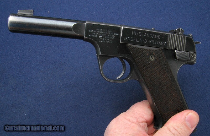 Description: Here's a used Hi-Standard Model H-D Military for sale. Chambered in .22 LR of course. 4.5" barrel, old growth walnut grips that would really shine with a cleaning. Bore is bright, strong and clean. Comes with one 10 round magazine. Fantastic crisp and light trigger. I'd say about 70% original blue. Lots of life left in this old girl. $35 shipping to the lower 48, 3% surcharge for using a CC. If you pay with a personal check, you can expect us to hold the item for up to 10 days to ensure that the check clears. SOLD Handgun Caliber: .22 Long Rifle |