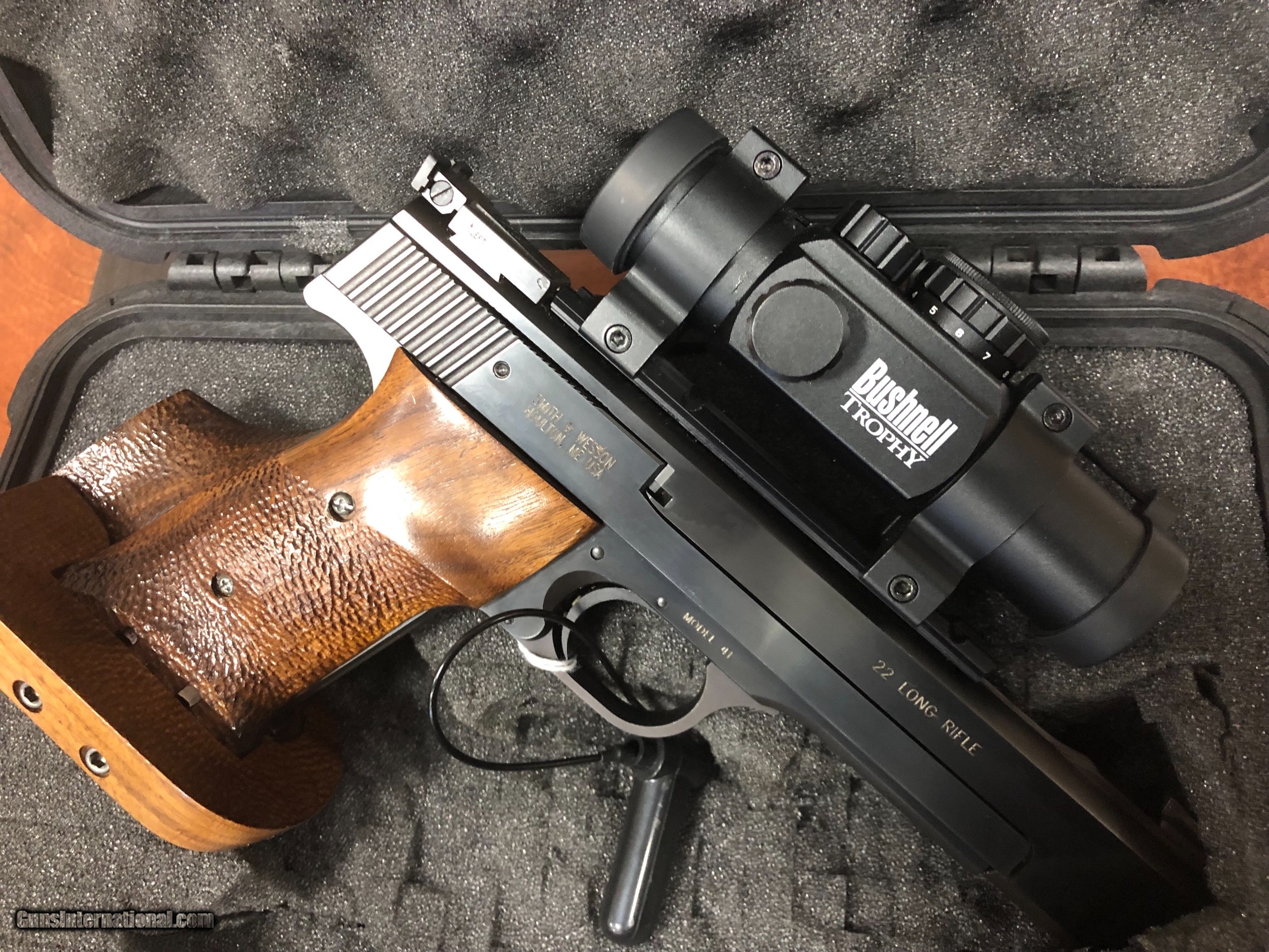 Description: This is a used Smith & Wesson Model 41 22 LR 5.5” barrel handgun. The gun comes with a extra mag and bushnell red dot. I had a custom target grip and pelican handgun case. The gun is in 90-95% condition. No CA Sales. SOLD Manufacturer: Smith & Wesson Model: 41 Caliber Info: 22 LR Metal Condition: 90-95% |