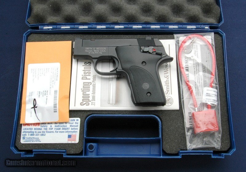 Description: If you're into these little guys, you won't go wrong with this one. Overall excellent condition with just a few touches of high edge wear, that could easily be touched up and thus disappear. Comes in the original S&W box (no end tag), with all of the paperwork, inserts, manual, etc. It appears this was originally purchased out east, so the fired case was turned in to the PD. The one shown does not go to this gun, but was in the case. Didn't notice until I had taken the pics. One magazine included. $40 shipping to the lower 48, 3% surcharge for using a CC. If you choose to pay with a personal check, we will hold the item for up to 10 days to make sure that it clears. Please expedite such pymts as we will hold an item on your word for 5 days. SOLD Handgun Caliber: .22 Long Rifle |