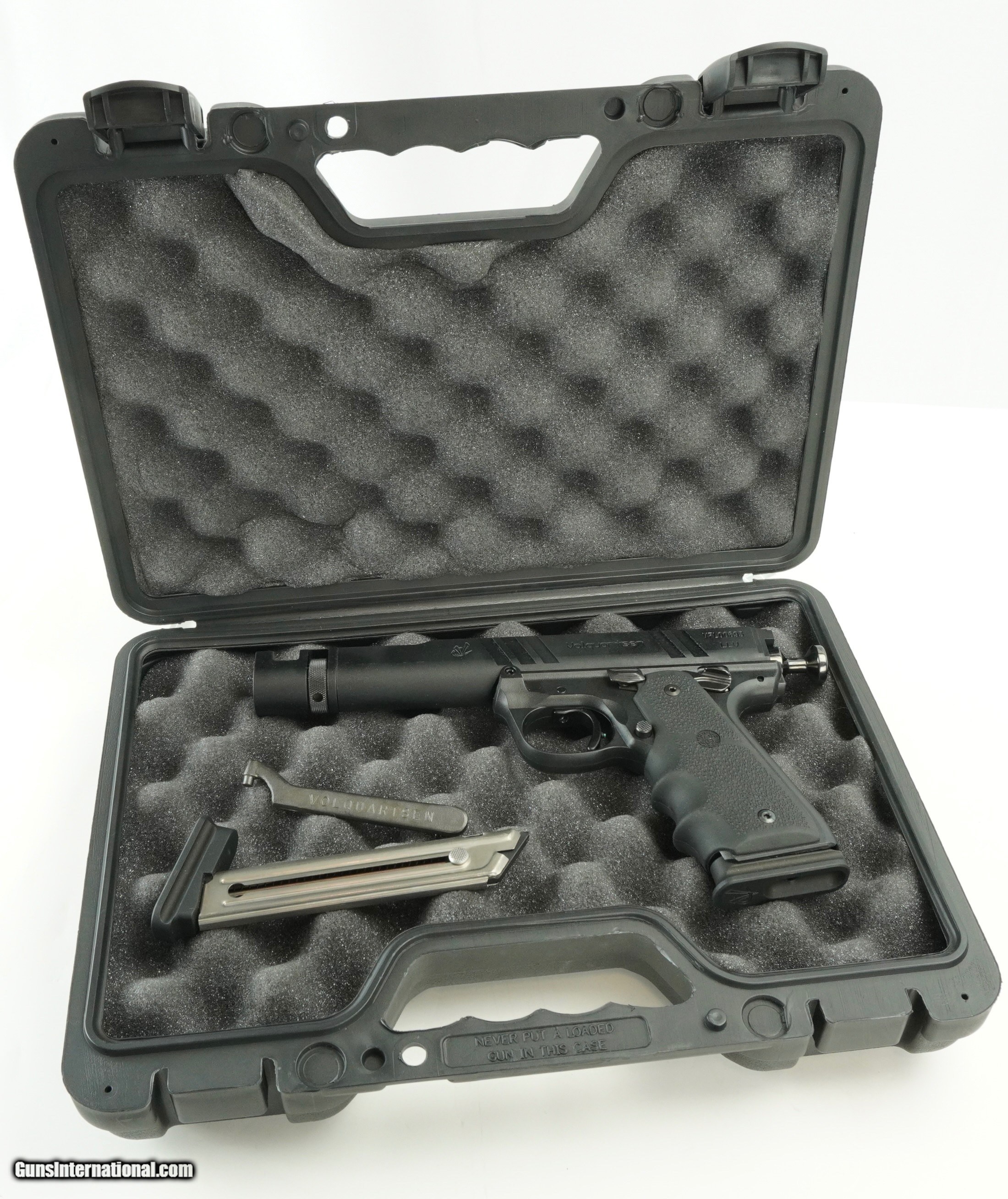 Handgun Caliber: .22 Long Rifle Manufacturer: Volquartsen Model: VF4M?X Black Mamba-X Barrel Length: 4.5 Metal Condition: Excellent Bore Condition: Excellent Action: Semi Finish: Black Cerakote Weight: 1.8 lbs Sights: N/A Price: $1,350.00 Contact Seller |