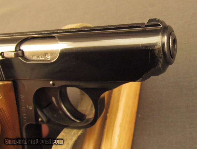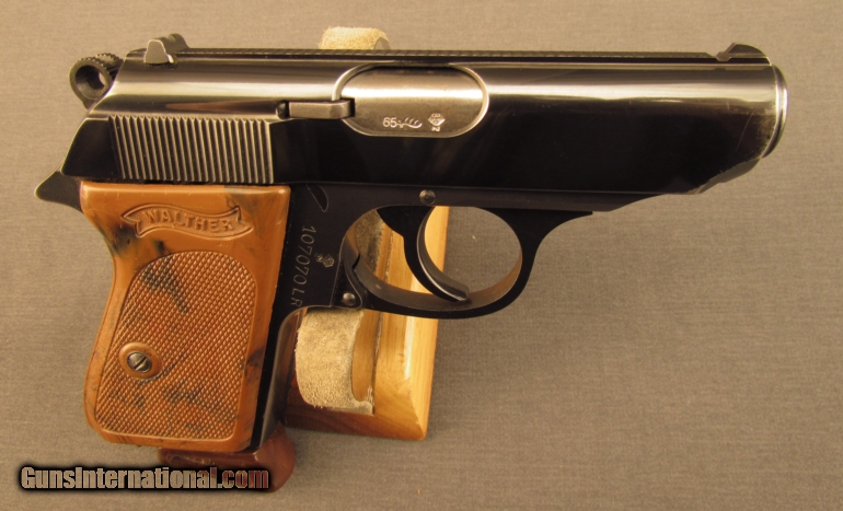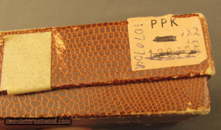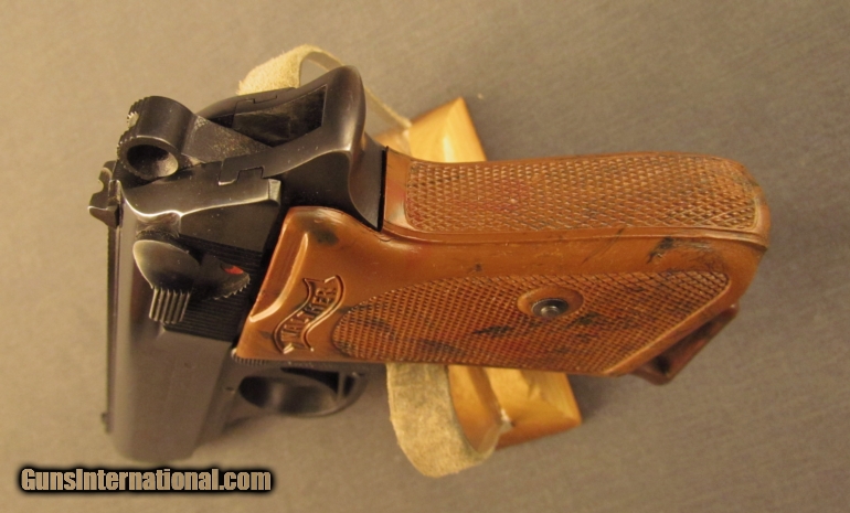 Description: Serial #107070LR, .22 LR, 3 1/8” barrel with an excellent, bright bore. This is a 1965 dated pistol that retains 98-99% of the original blue finish on both the slide and frame, and has some traces of silvering at the muzzle and along a few of the high edges. The checkered brown grips are in fine shape with some slight warping (commonly found on pistols of this vintage) at the top of the left panel. The pistol is housed in its original two-piece box with two finger-rest magazines, cleaning rod, and manual. This is a great little “true” PPK, imported prior to the '68 GCA. FFL or C&R SOLD Manufacturer: Walther Model: PPK Serial Number: 107070LR Caliber Info: .22LR Gauge Info: .22LR |