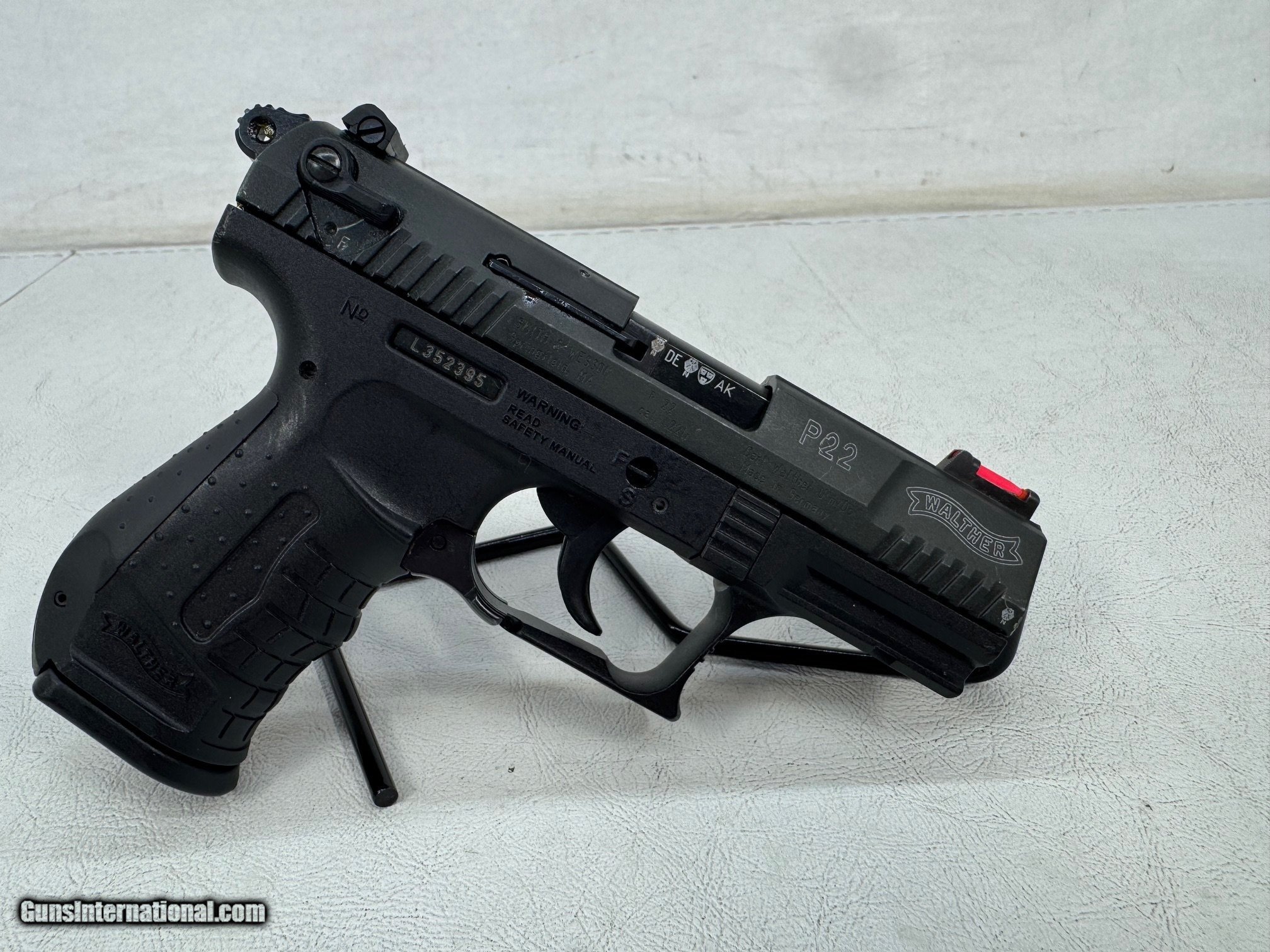 Description: Guns Listing ID: 613059 THIS IS A WALTHER P22 .22LR BLACK PISTOL CARL WALTHER P22 WITH MATTE BLACK FINISH AND BLACK POLYMER FRAME. HV (high visibility) FIBER OPTIC FRONT SIGHT WITH 2-WHITE DOT REAR, REAR SIGHT IS ADJUSTABLE. AMBIDEXTROUS THUMB SAFETY AND MAGAZINE RELEASE. HAS 1 MAGAZINE. HAS SOME HOLSTER WEAR ON SLIDE, FRAME HAS SOME SIGNS OF USE. OVERALL CONDITION IS GOOD. Includes: Magazine(s): 1 Capacity: 10 Rounds Features: Manufacture: Walther Model: P22 Caliber: .22 LR. Barrel Length: 3.47\" Full Length: 6.12\" Length Of Pull: 2.74\" Slide Finish: Matte Black Finish/ Stainless Barrel Finish: Black Stainless Frame: Black Polymer SKU# 319067 RR Manufacturer: WALTHER Model: P22 Caliber Info: .22 long/.22 lr Condition: Used - Non-Certified Barrels: 3.47" BARREL Action: SEMI AUTOMATIC Finish: black Price: $269.99 Contact Seller |