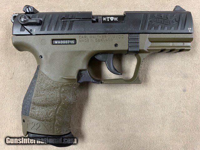 Description: An excellent original condition little Walther P22 with OD Green Frame, etc. SOLD |
