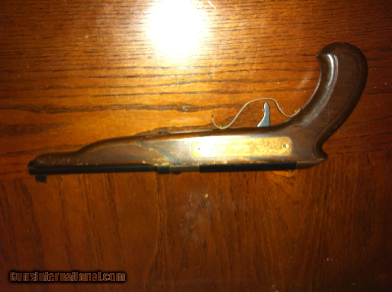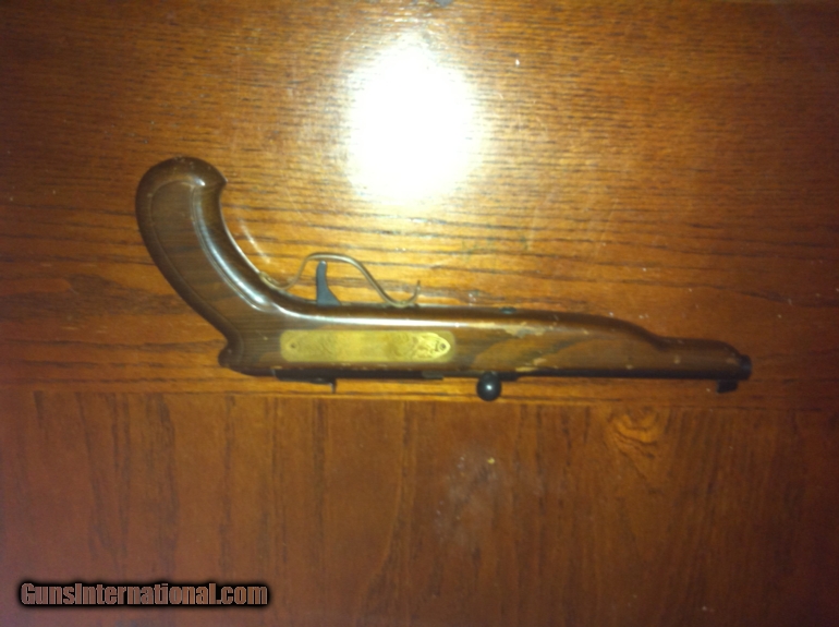 Description: A rare pistol produced by Hamilton Arms for this country. It is a single shot 22 LR bolt action which was designed as a straight blow back action. Pistol does not have an extractor, but uses barrel pressure to blow open the bolt thereby blowing out the empty cartridge case. Metal retains 100% original blue. Wood retains 95% orig varnish. I have fired pistol and function is 100%. FFL or C&R required. $375.00 shipped. SOLD Curio/Relic: Yes |