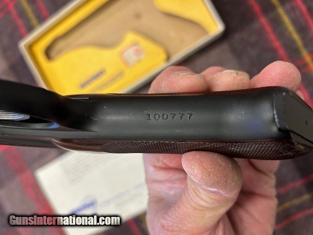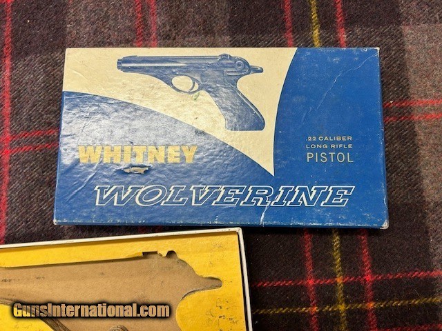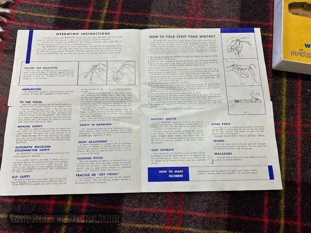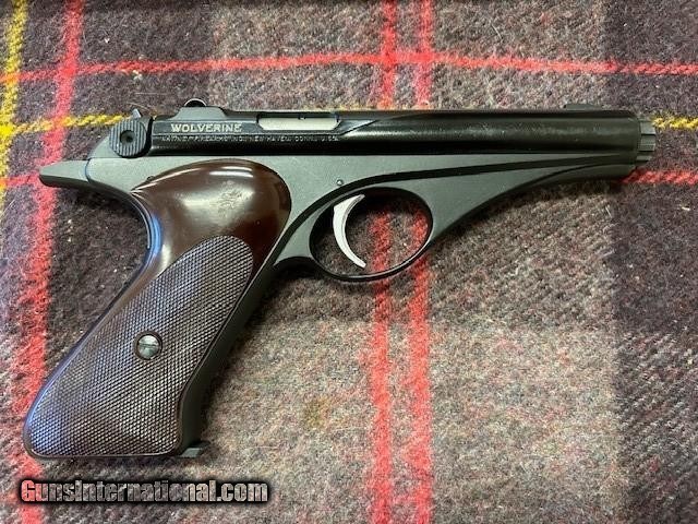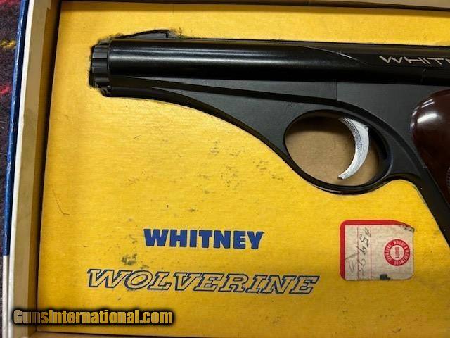 Description: EXCELLENT CONDITION WHINEY WOLVERINE, WITH ORIGINAL BOX AND MANUAL, GUN HAS SLIGHT SCUFFING ON THE RIGHT SIDE FROM BEING IN THE BOX, THESE WERE MANUFACTURED FROM 1956-1958, 13,371 WERE TOTAL PRODUCED, RIGHT HAND GRIP SCREW IS SLIGHTLY BURRED, PAYMENT OF CASHIERS CHECK OR MONEY ORDER CARDS ADD 3% SOLD Handgun Caliber: .22 Long Rifle |