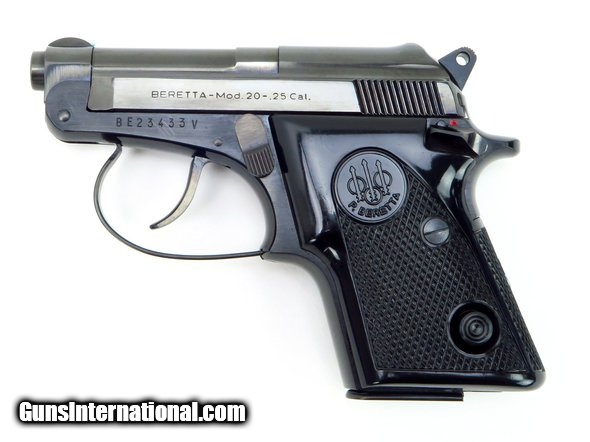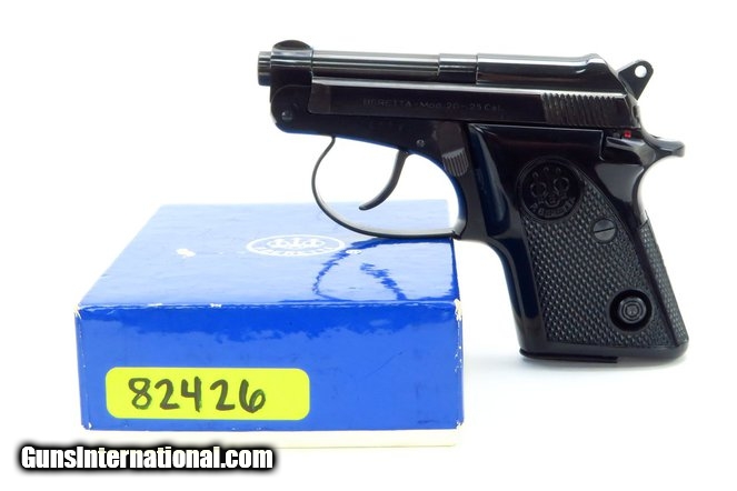 Description: Beretta 20 .25 Auto caliber pistol. Early double action model in excellent condition with box and tip-up barrel. SOLD |
