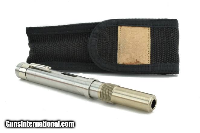 Description: Braverman Stinger .25 ACP caliber pen gun. Rare 1990’s vintage pen gun. This must be folded to fire so it is not an NFA item. Excellent condition with pouch.
