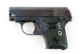 Colt Automatic .25 ACP caliber pistol. Pocket pistol made in 1926. 80% of the original blue with the slide toning. Good case colors in the trigger. The safety has turned to a patina.