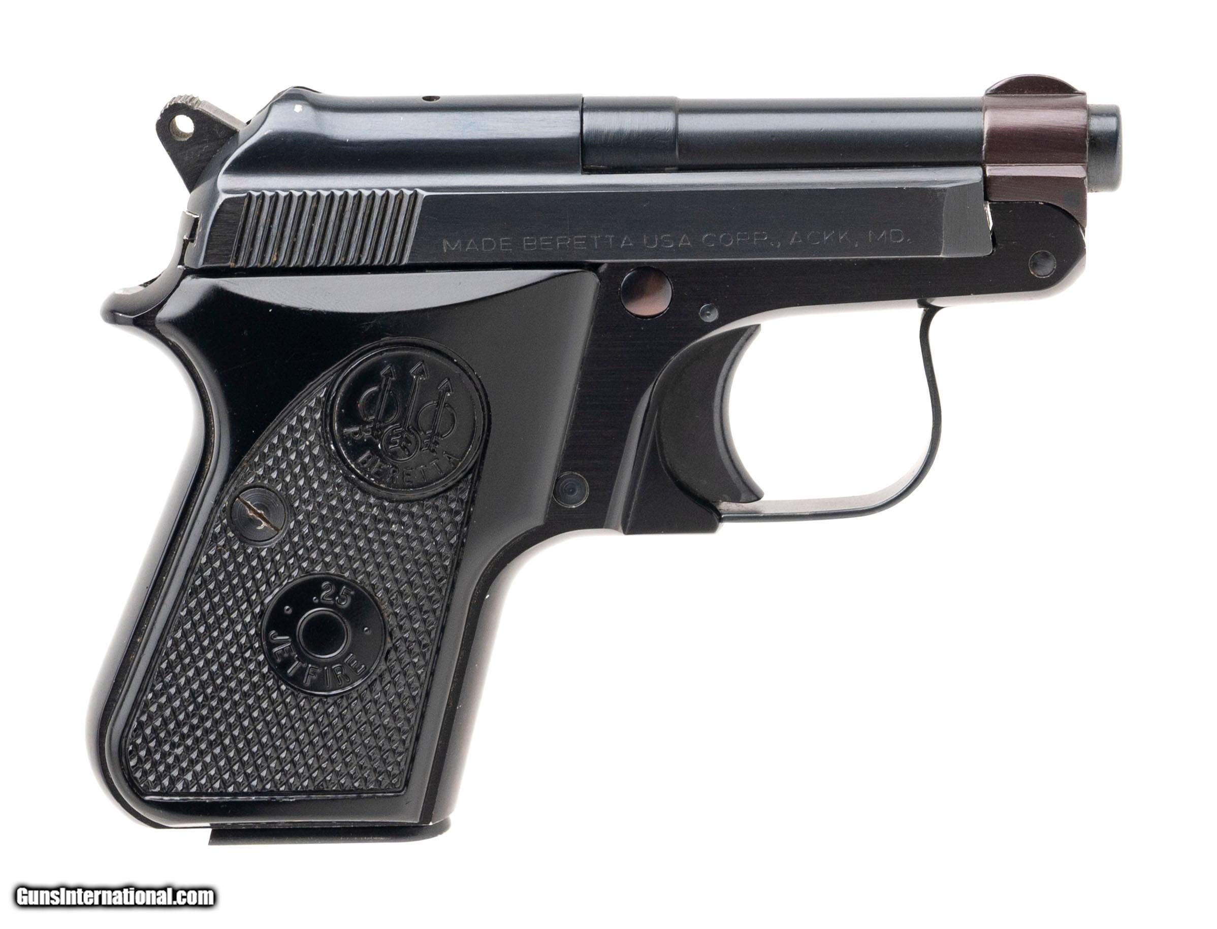 Description: "SN: BER60084V. Modern production, .25 ACP with a 2.5"" tip-up barrel. Bore is very good. Semi-auto pocket pistol with a manual thumb-safety, blued finish, and black plastic grips. Finish & grips show minor handling marks. Includes original box. Overall condition is very good. Price: $495.00 Contact Seller |