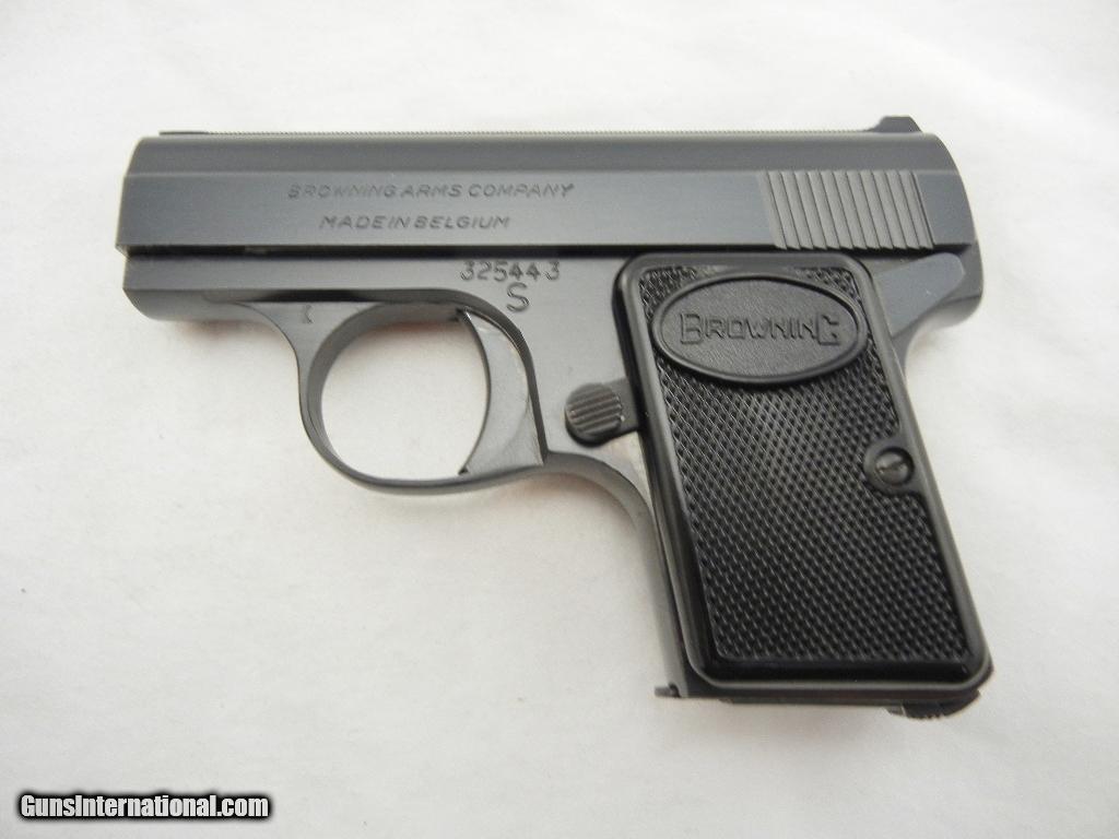 Description: This is a Browning baby 25. This gun is 99% in the box. Serial # is 325xxx. Buyer pays 30.00 shipping. Thank you. 34-5-16 SOLD |