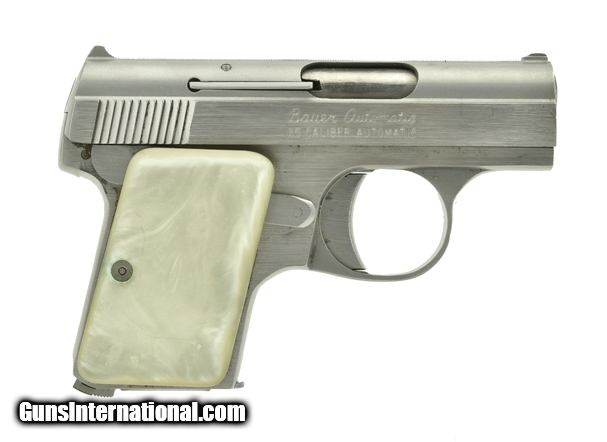 Description: Bauer 25 .25 Auto caliber pistol. Stainless Steel pocket pistol in very good condition.