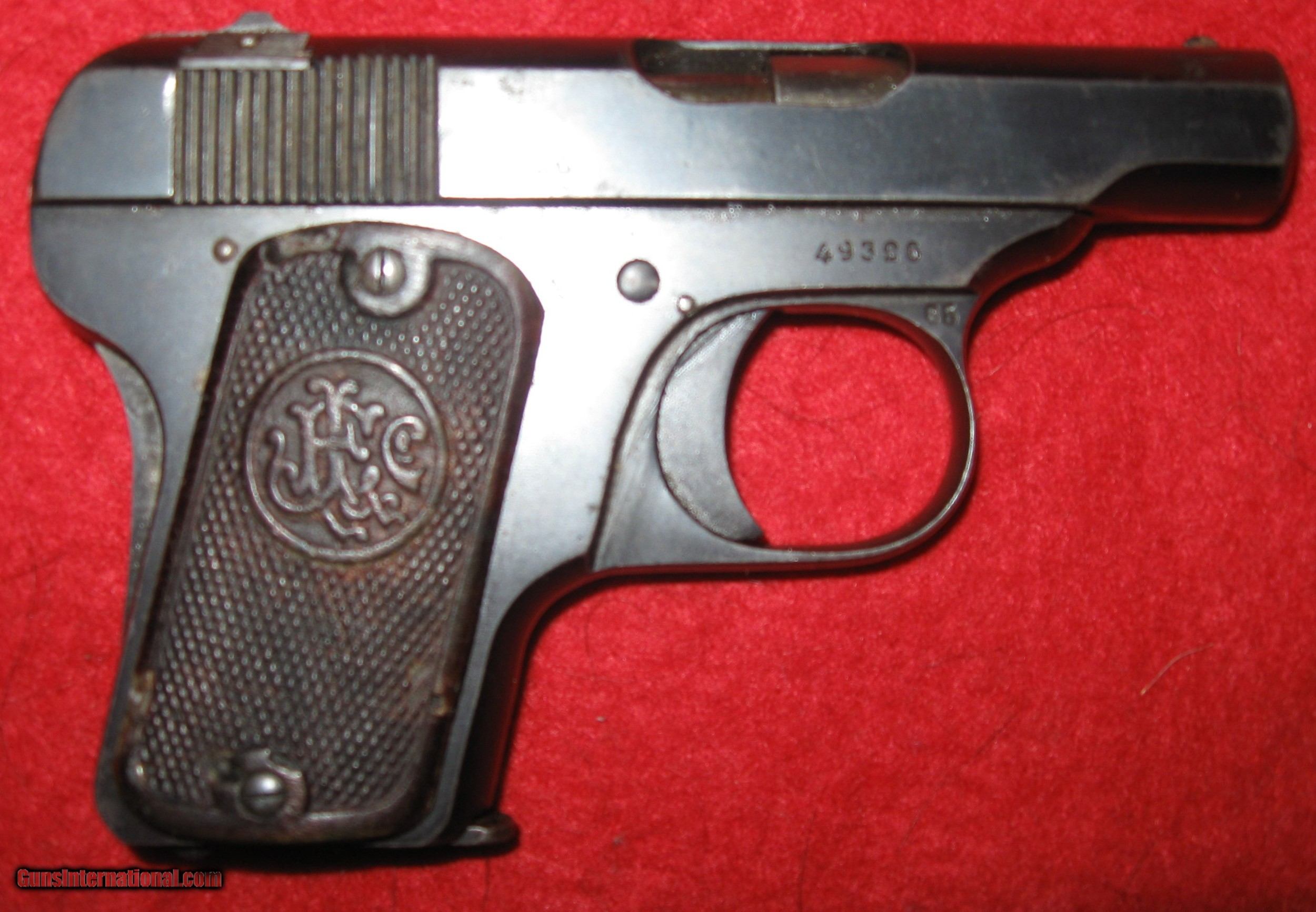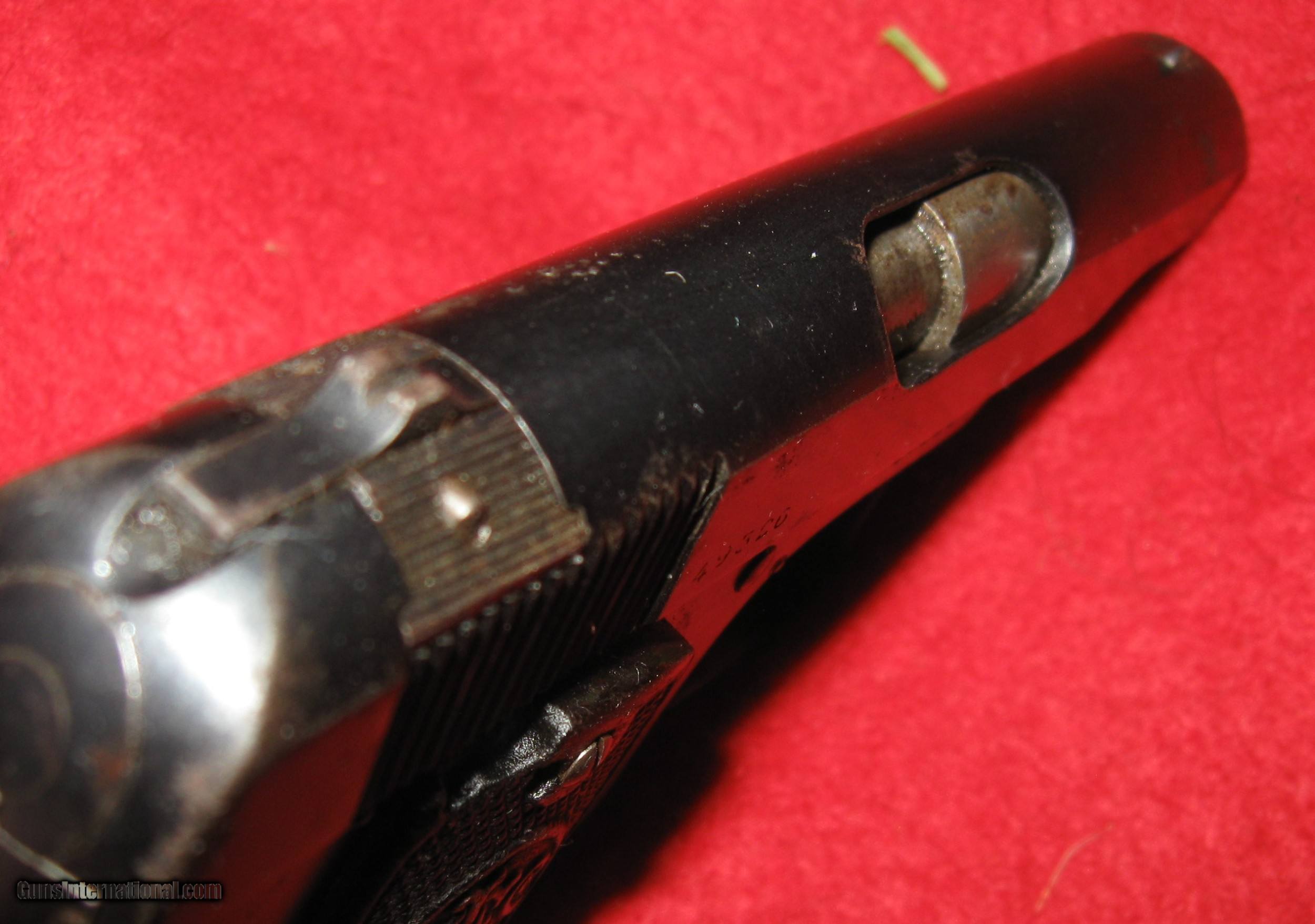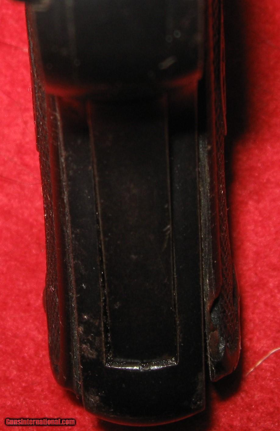 Description: SALE PENDING BOB W- 1/20/23 10 DAY HOLD - THIS 25 ACP PISTOL IS A MELIOR DESIGN, BELGIAN MADE JIEFFECO MODEL. IT WAS MADE FOR DAVIS WARNER ARMS CORP IN NEW YORK. SERIAL # 49326 AND WAS PROBABLY MADE IN THE 1920'S. IT IS IN GOOD CONDITION WITH SOME SCATTERED LIGHT EXTERNAL RUST SPOTS. THE BORE IS VERY GOOD TO EXCELLENT, SHINY WITH GREAT RIFLING. THE MAGAZINE IS PROBABLY A MISMATCH AND IS MARKED LIKE A COLT MAG (PERHAPS REFERS TO CALIBER??) BUT FITS WELL. IT HAS A FUNCTIONING GRIP SAFETY AND A MOST UNUSUAL TAKEDOWN LATCH INCORPORATED INTO THE REAR SIGHT. THE SIGHT LIFTS UP AND THE ENTIRE PIECE SLIDES OUT OF A DOVETAIL TO RELEASE THE SLIDE. THE BARREL SHROUD AND RECOIL SPRING REMAIN CAPTIVE IN THE SLIDE HOUSING. SHIPPING IS $50 MY FFL TO YOUR FFL SOLD Handgun Caliber: .25 ACP (6.35mm Browning, 6.35×16mmSR) Manufacturer: JIEFFECO Model: DAVIS WARNER ARMS 25 ACP POCKET PISTOL Serial Number: 49326 Barrel Length: 2 Condition: GOOD Metal Condition: GOOD-SCATTERED LIGHT RUST SPOTS Wood Condition: GOOD - DINGS AND DENTS Bore Condition: EXCELLENT Action: SINGLE ACTION SEMI AUTO Finish: BLUE - SCATTERED LIGHT RUST SPOTS Sights: FIXED Manufacture Date: 1920'S ?? |