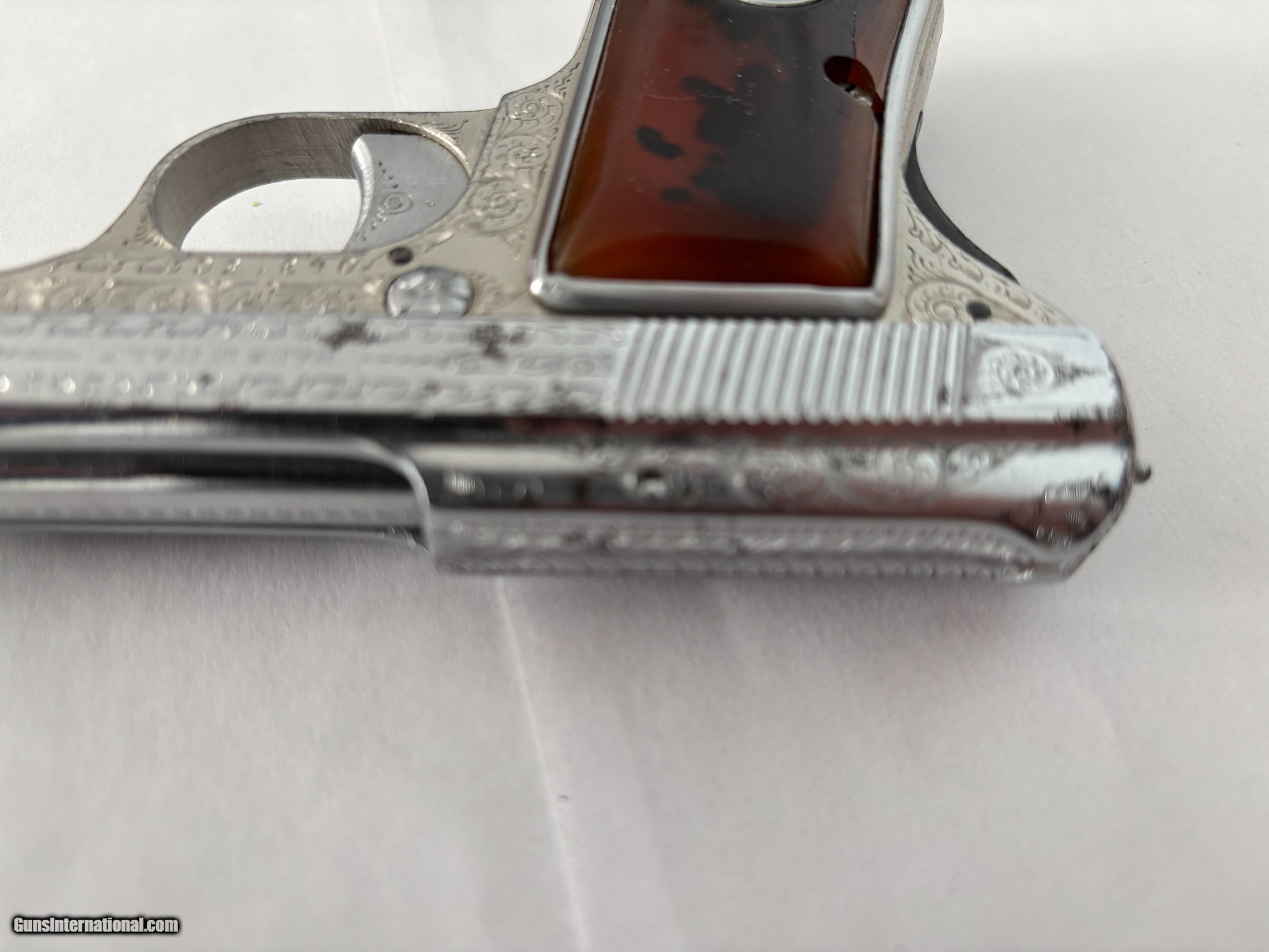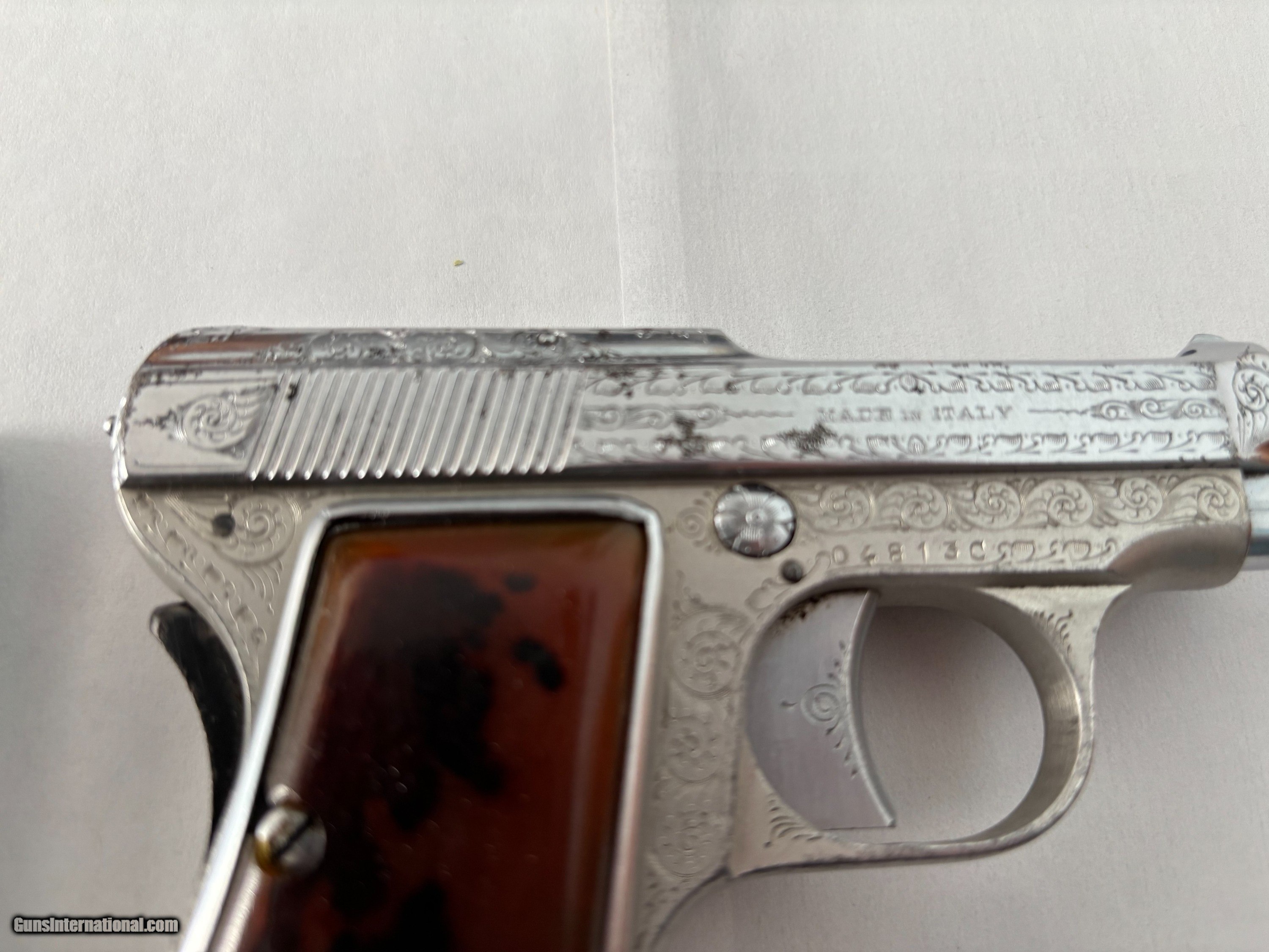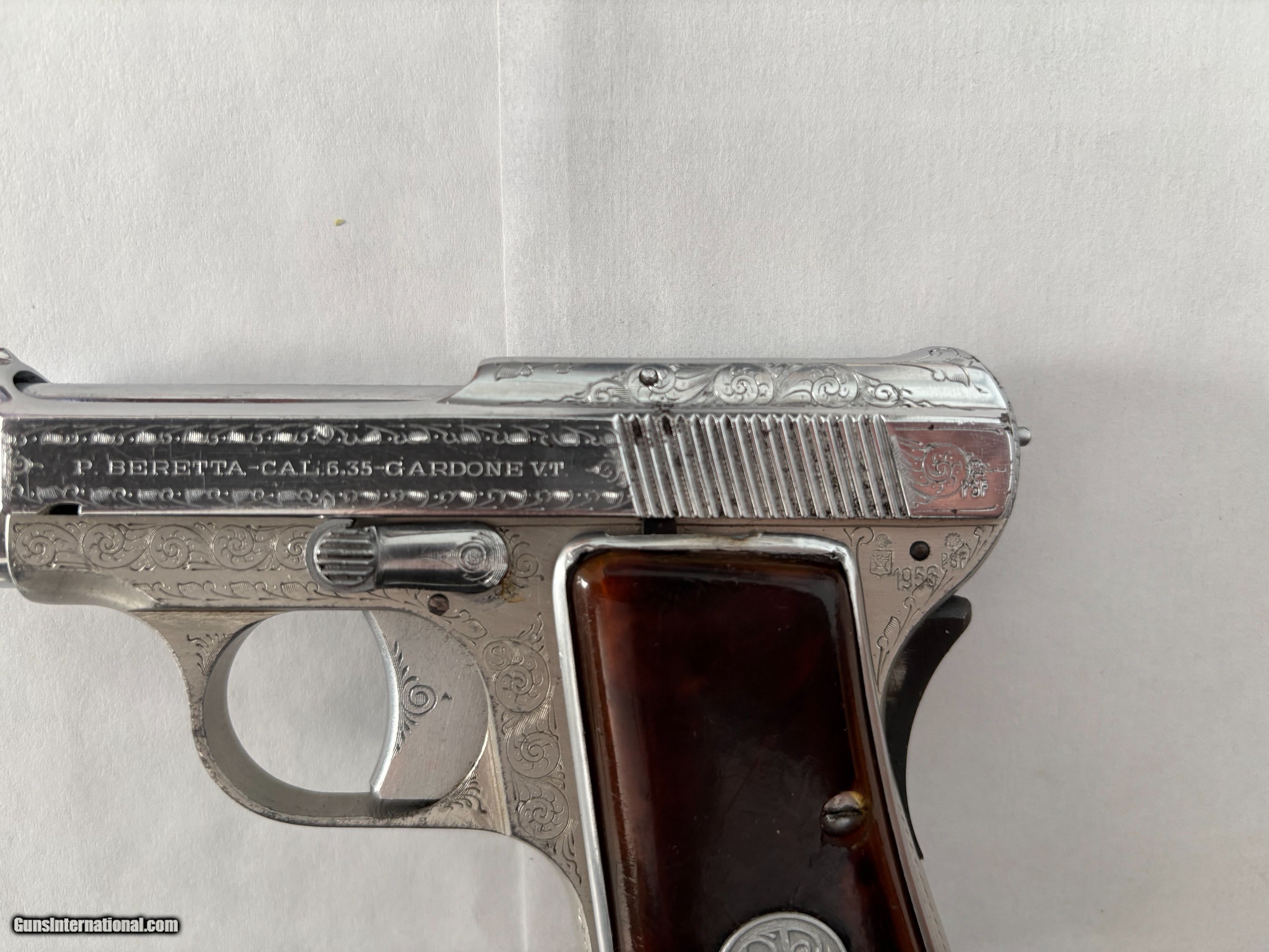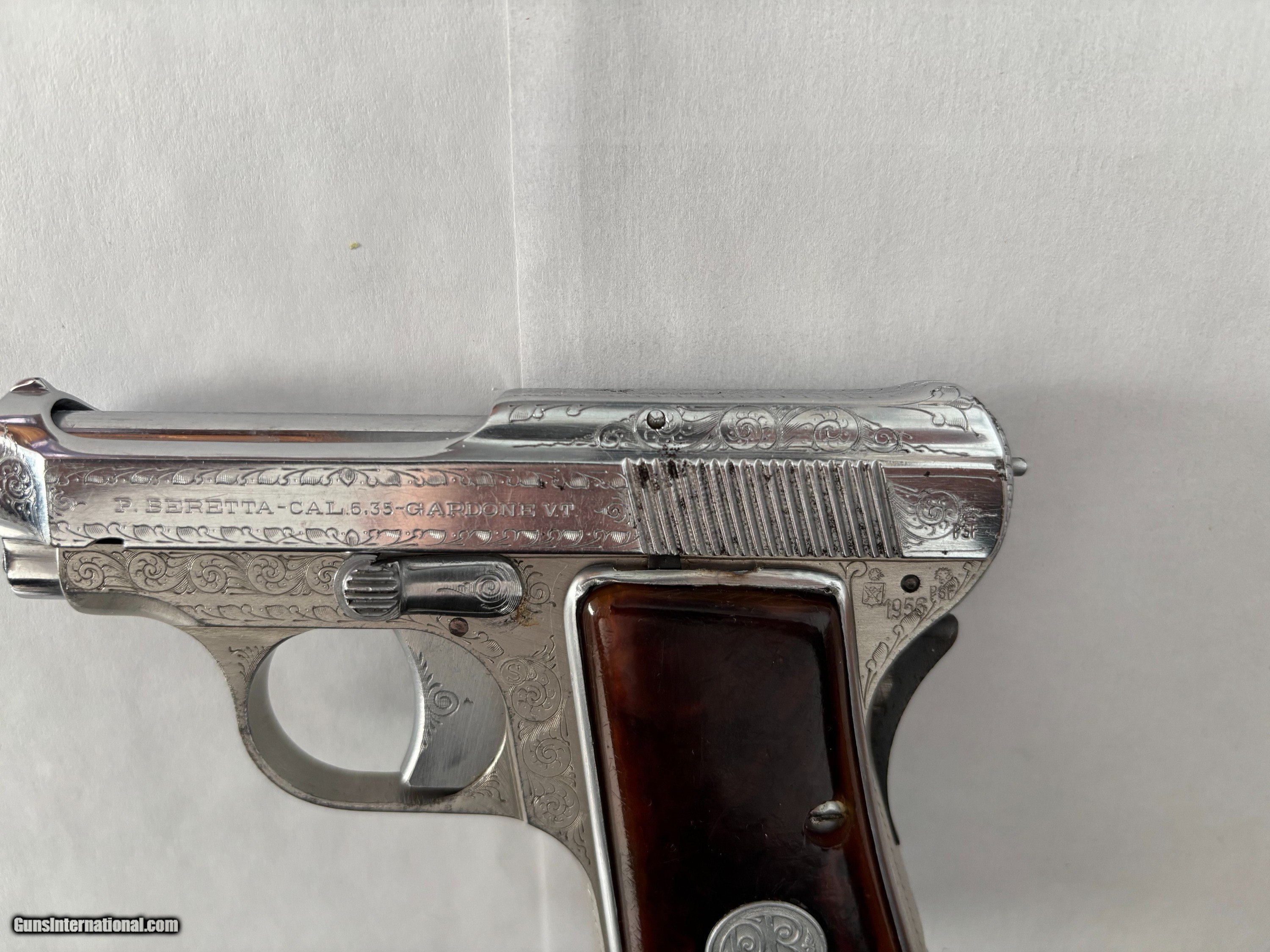 Description: Beretta 420, made in 1956, chambered in .25ACP. Automatic. Features include: single action, steel frame, 8 shot mag., 2 1/4" barrel, plastic grips, . Nice bore. Made in Italy. Ship via FFL to your FFL. $ 300 Handling fee $ 50 .Plus Insurance cost Private owner collecting for over 50 years. Will ship through FFL dealer to your FFL dealer only. Bought and sold many guns in past. I only collected Beretta guns of nice high quality. Safety notice: Buyer is solely responsible for determining that a used gun is safe to shoot. Our guns have not been test fired. 3 calendar day inspection period. This is an inspection period, a gun is not to be fired or disassembled. Seller and buyer has to agree for the return in writing. Gun must be insured for return. No returns for buyers remorse or change of mind. Please inspect all photos carefully and ask all questions before purchasing. Payment by Bank check, Money order, or Cashier check. NO INTERNATIONAL SALES SOLD |