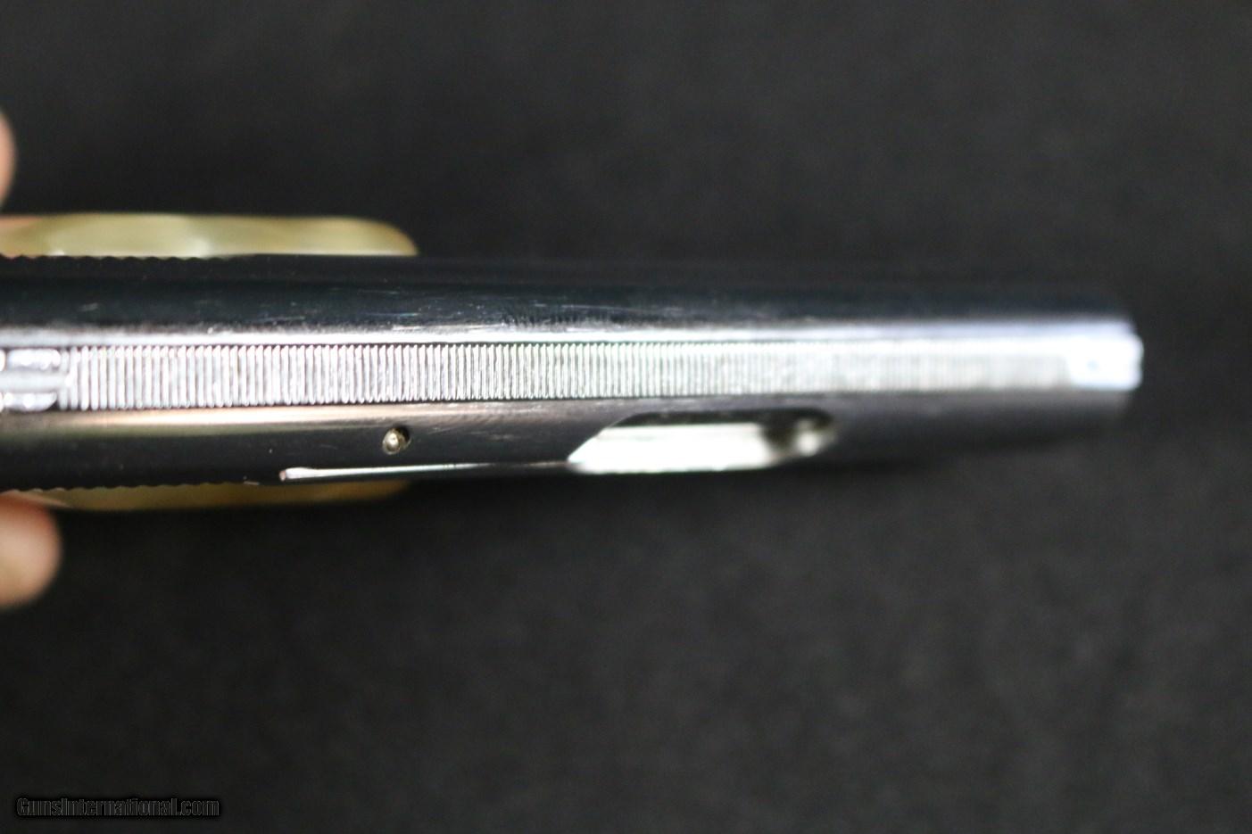 Description: MADE IN BELGIUM IN 1965. 90% CONDITION AND ALL FACTORY. GREAT SHOOTER OR INVESTMENT PIECE. PLEASE ADD $25 FOR SHIPPING. RETURN POLICY: We offer a 3 day return policy. Items must be returned in the same condition as received. Notification must be made with-in 3 days of receipt at dealer. All fees are non-refundable no exceptions. LAW-A-WAY: We offer a 60 day law-a-way with a 1/3 up front and 1/3 every 30 days. Once started all sales are final with no exceptions. CONDITIONS OF SALE: Art’s Gun Shop makes no express or implied warranty or representation with respect to items being advertized or sold. In no event shall Art’s Gun Shop be held responsible for correctness of description, representation, or warranty of items sold by them or their representatives. All items sold as collector items. All liability concerning the use of any weapons purchased from Art’s Gun Shop or its representatives is assumed by the purchaser. SOLD Manufacturer: BROWNING Model: BABY 25 Caliber Info: 25 ACP Condition: VERY GOOD Metal Condition: VERY GOOD Wood Condition: VERY GOOD Bore Condition: EXCELLENT Action: SEMI Triggers: SINGLE |