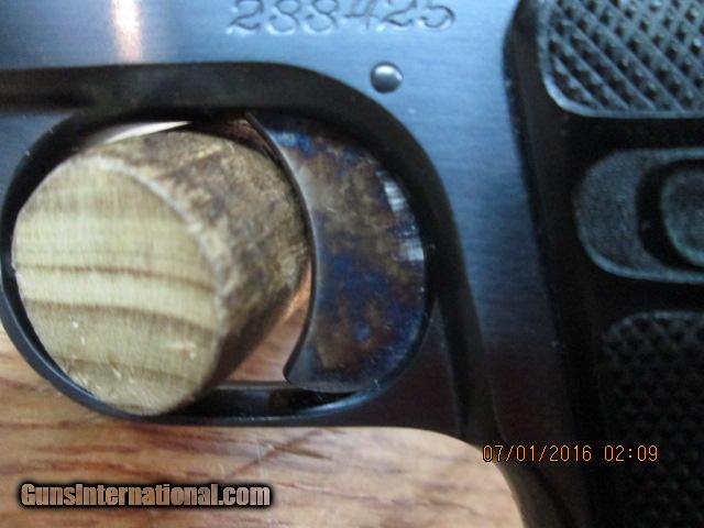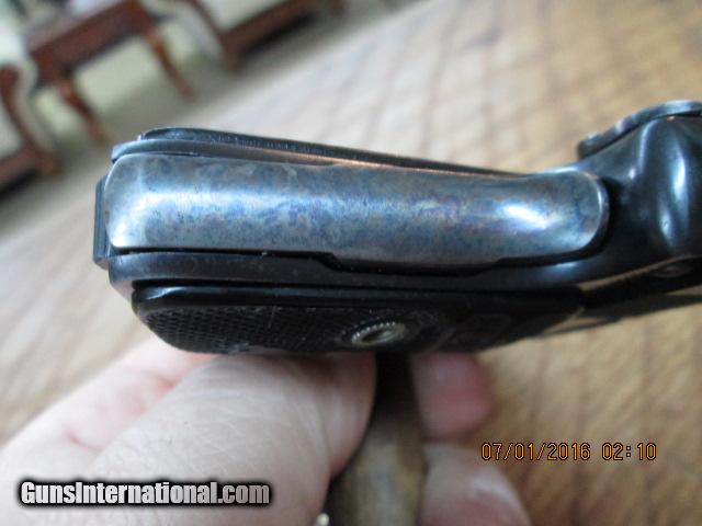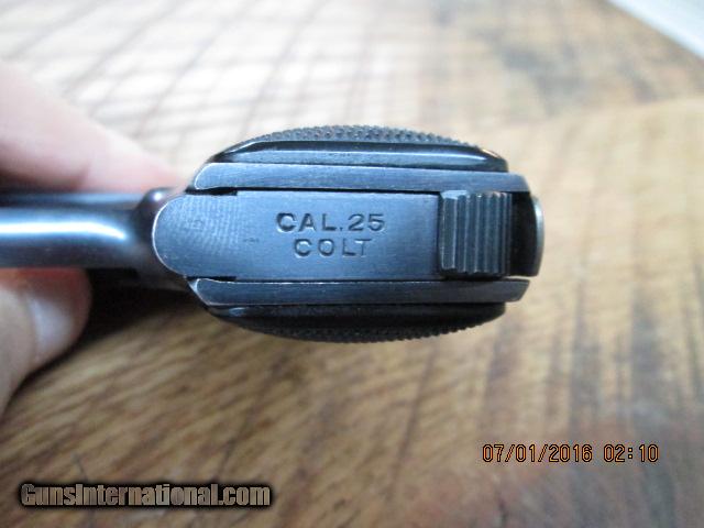 Description: COLT 1908 BABY HAMMERLESS .25ACP (MFG. 1921) PISTOL UNFIRED 99.5% AS NEW 2” BARREL WITH UNFIRED BORE. BLACK COLT CHECKERED GRIPS. 100% ORIGINAL CASE COLOR. LAST PAT. DATE JULY 31, 1917, GUN IS LIKE NEW. COST 1100.00 PLUS 40 SHIPPING. NO CREDIT CARDS TAKEN. CHECKS TAKE UP TO 10 DAYS TO CLEAR, MONEY ORDERS TAKE UP TO 5 BUSINESS DAYSTO CLEAR. CALL DANNY WITH ANY QUESTIONS AT 828-698-8804.GOD BLESS! SOLD Curio/Relic: Yes Manufacturer: COLT Model: 1908 BABY HAMMERLESS Caliber Info: 25 ACP Bore: EXCELLENT Condition: 99.5% |