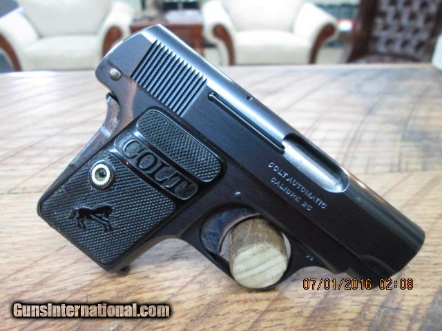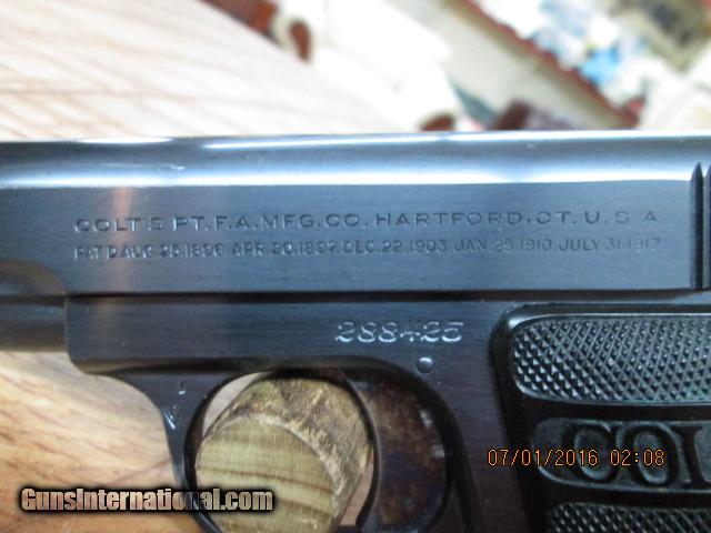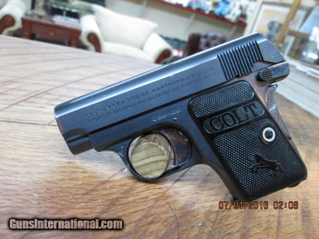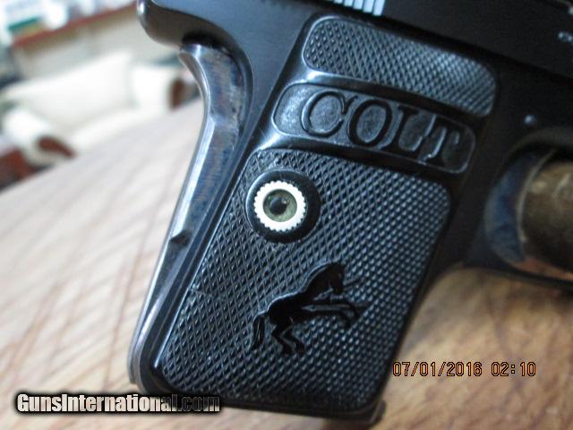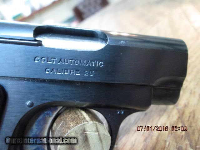 COLT 1908 BABY HAMMERLESS .25 ACP (MFG.1921) UNFIRED 99.5% AS NEW.