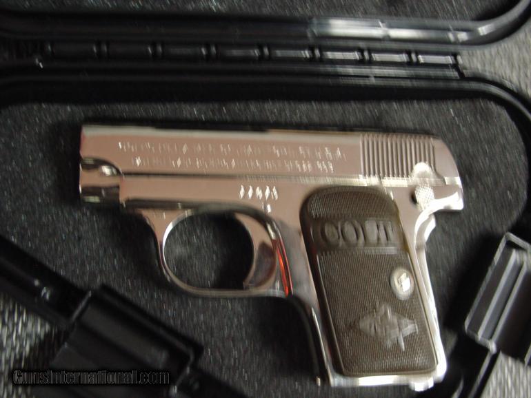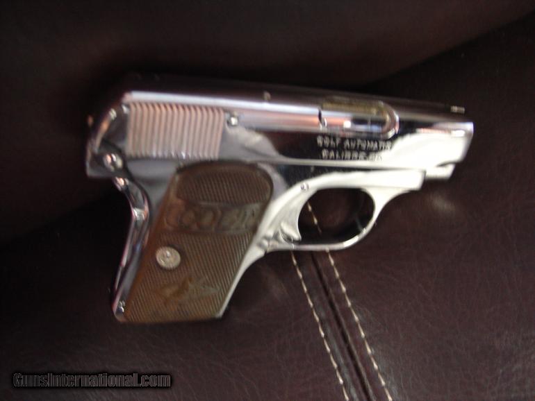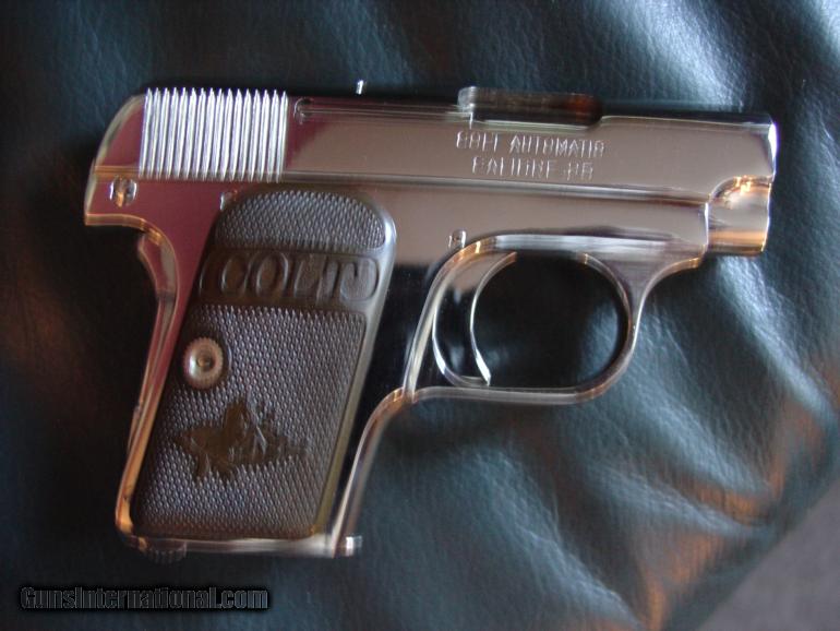 Colt 1908 Vest Pocket 25auto,2" barrel,hammerless,grip safety,made in 1913,fully refinished in bright polished nickel-like new & over 100 years old !!
