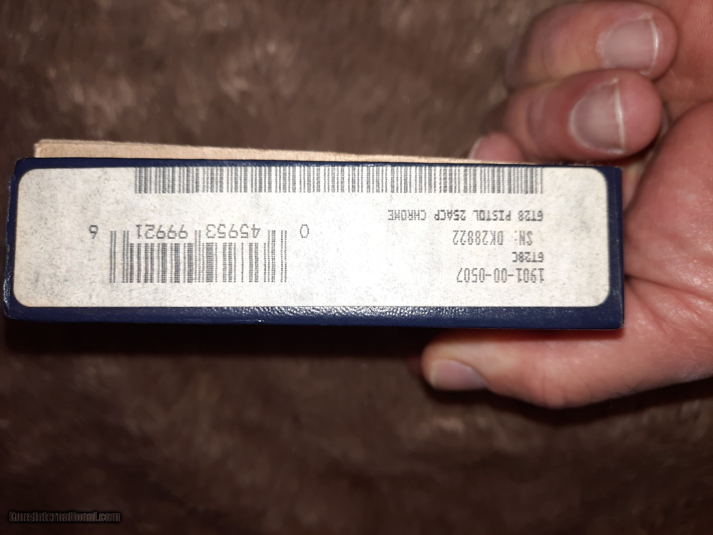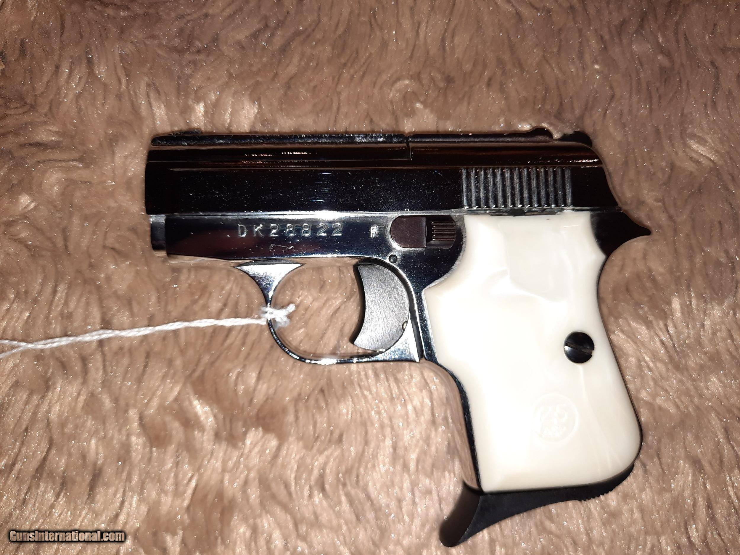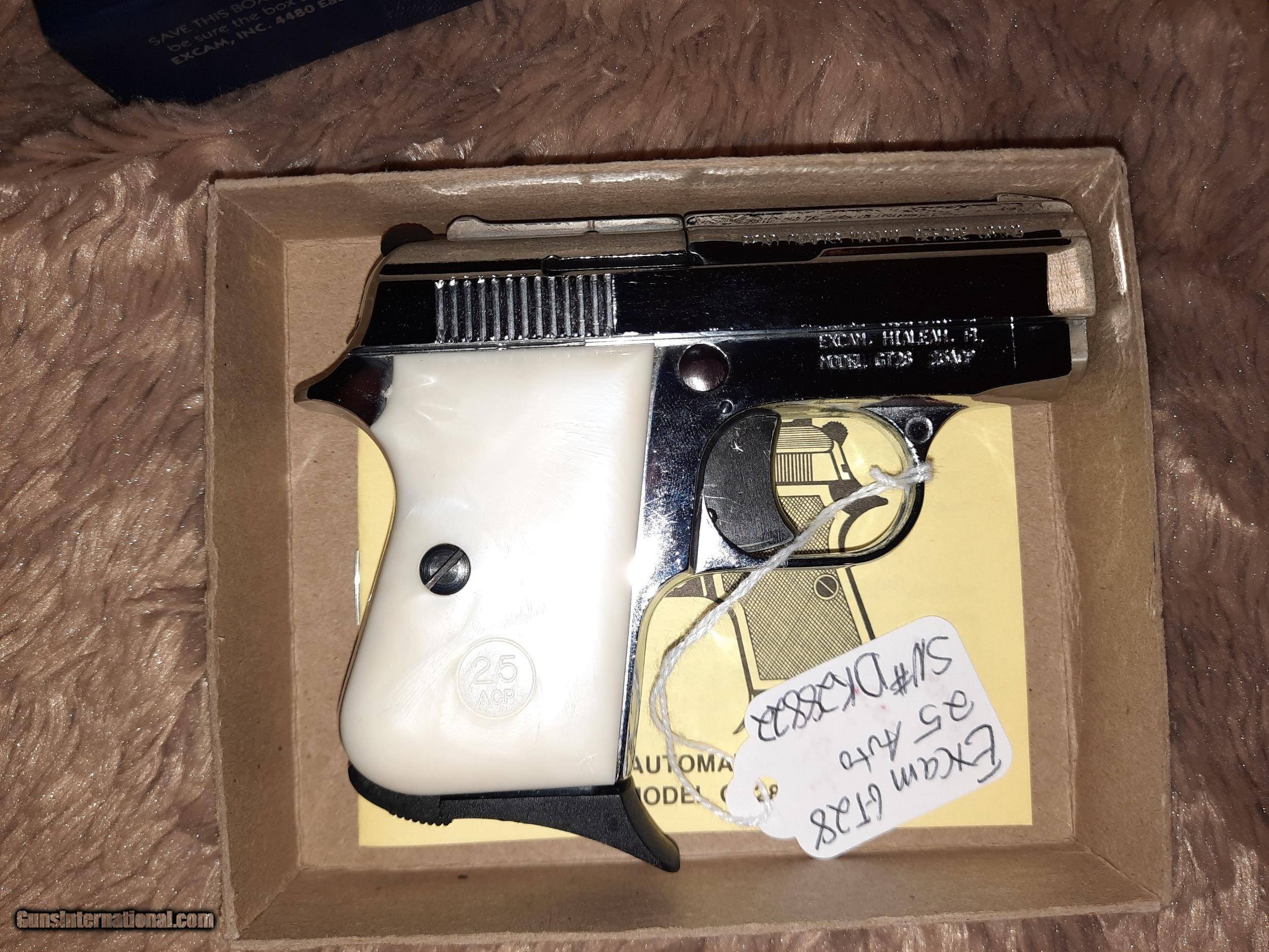 Description: SALE PENDING Excam Targa GT 25 Auto, nickel, imitation pearl grips, nib SOLD Handgun Caliber: .25 ACP (6.35mm Browning, 6.35×16mmSR) |