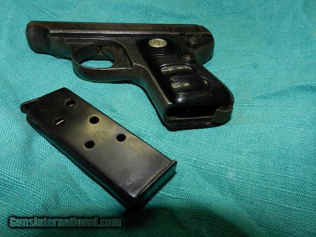 Description: GALESI in .25 acp made in Italy dated 1959, with about 15% original blue, the remainder grey color and handling marks from being carried. Action works good, and the very clean bore. Comes with one blued mag. Has black hard rubber factory grips with silver medallions.Has a few dents on the back strap like it had been dropped. Priced to go due to condition of finish, this is a good carry gun. We don’t have a site .I prefer money orders or a check. Item ships when funds come in. If you can only pay with a card let me know. I hope you like my wide selection of unusual guns, knives and gun parts. I try to keep the prices affordable, which means I make less money than most dealers. I consistently have the best selection of older guns If you BUY IT NOW you must still contact us for details buy it now doesn't end the sale, it just sends an email telling us you want to buy this gun. A phone call won’t secure a sale! Not home many times, the first buyer by email buys the gun !This site doesnot close down a sale when you do a BUY IT NOW like Ebay!I can get six buy it nows in an hour, first buyer to email gets the guns, others are in second place! Best to send another email . Sometimes not home to get calls. Some guns are required shipment to a gun dealer near you for a transfer to you when it arrives. With the widest selection of older guns at great prices, We don’t have a store, and sell on the internet only. SOLD Curio/Relic: Yes |