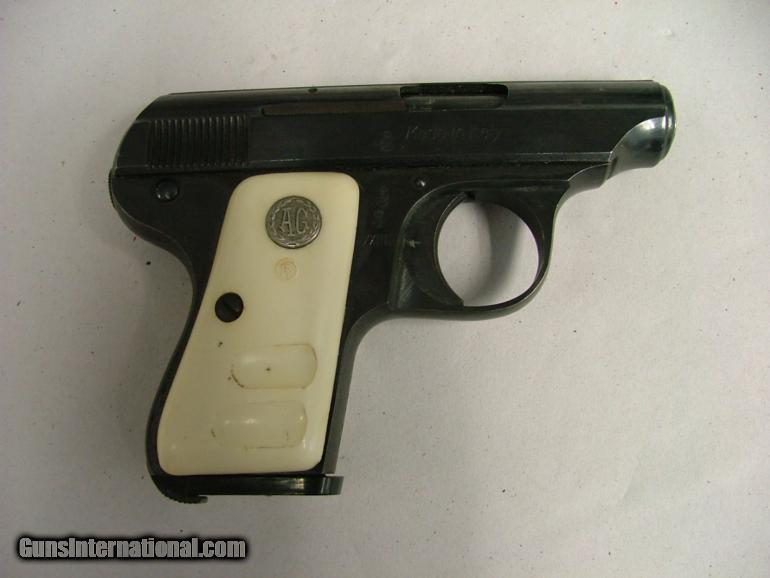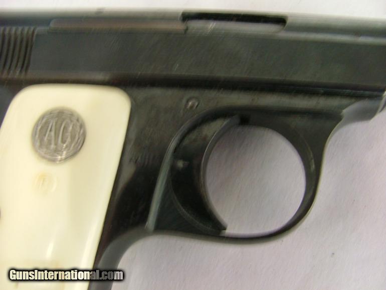 Description: Manufacturer: GALESI-BRESCIA Model: Other Model Caliber: 6.35 Barrel Length: 2 inch Capacity: 7 Soc. It. Flli Galesi-Brescia Semi automatic 6.35 caliber 7 round magazine The frame is stamp XXIII which means it was manufacture in 1967 It appears to be in good condition, everything seems to function as it should I only ship UPS and to a valid FFL holder .I Do not hold an FFL so please make sure your FFL transfer agent will accept. SOLD |