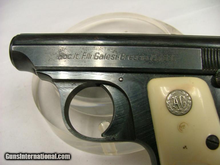 Manufacturer: GALESI-BRESCIA Model: Other Model Caliber: 6.35 Barrel Length: 2 inch Capacity: 7 Soc. It. Flli Galesi-Brescia Semi automatic 6.35 caliber 7 round magazine The frame is stamp XXIII which means it was manufacture in 1967 It appears to be in good condition, everything seems to function as it should I only ship UPS and to a valid FFL holder .I Do not hold an FFL so please make sure your FFL transfer agent will accept.