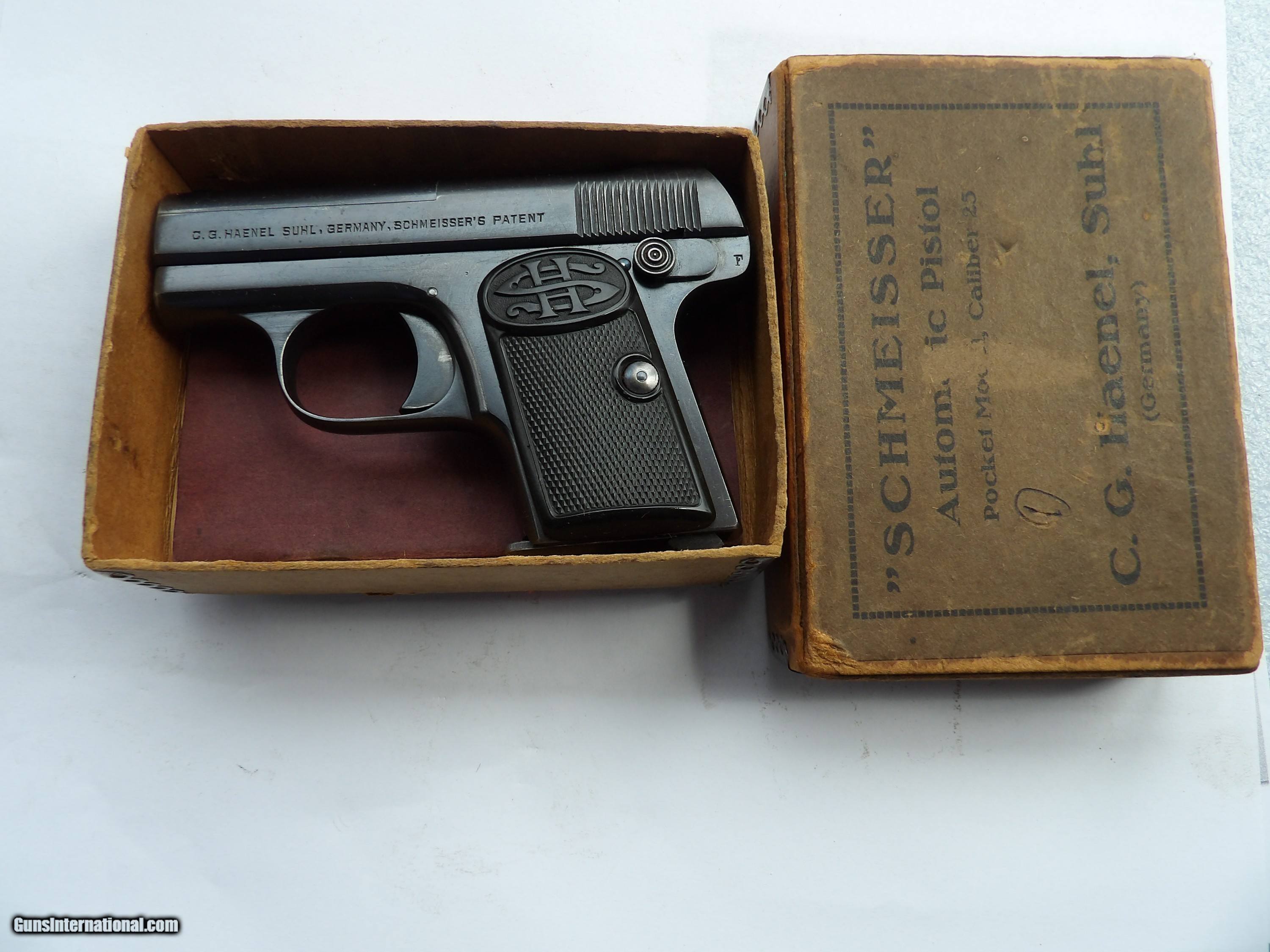 GERMAN CAL. 25 SCHMEISSER PISTOL IN ORIGINAL BOX