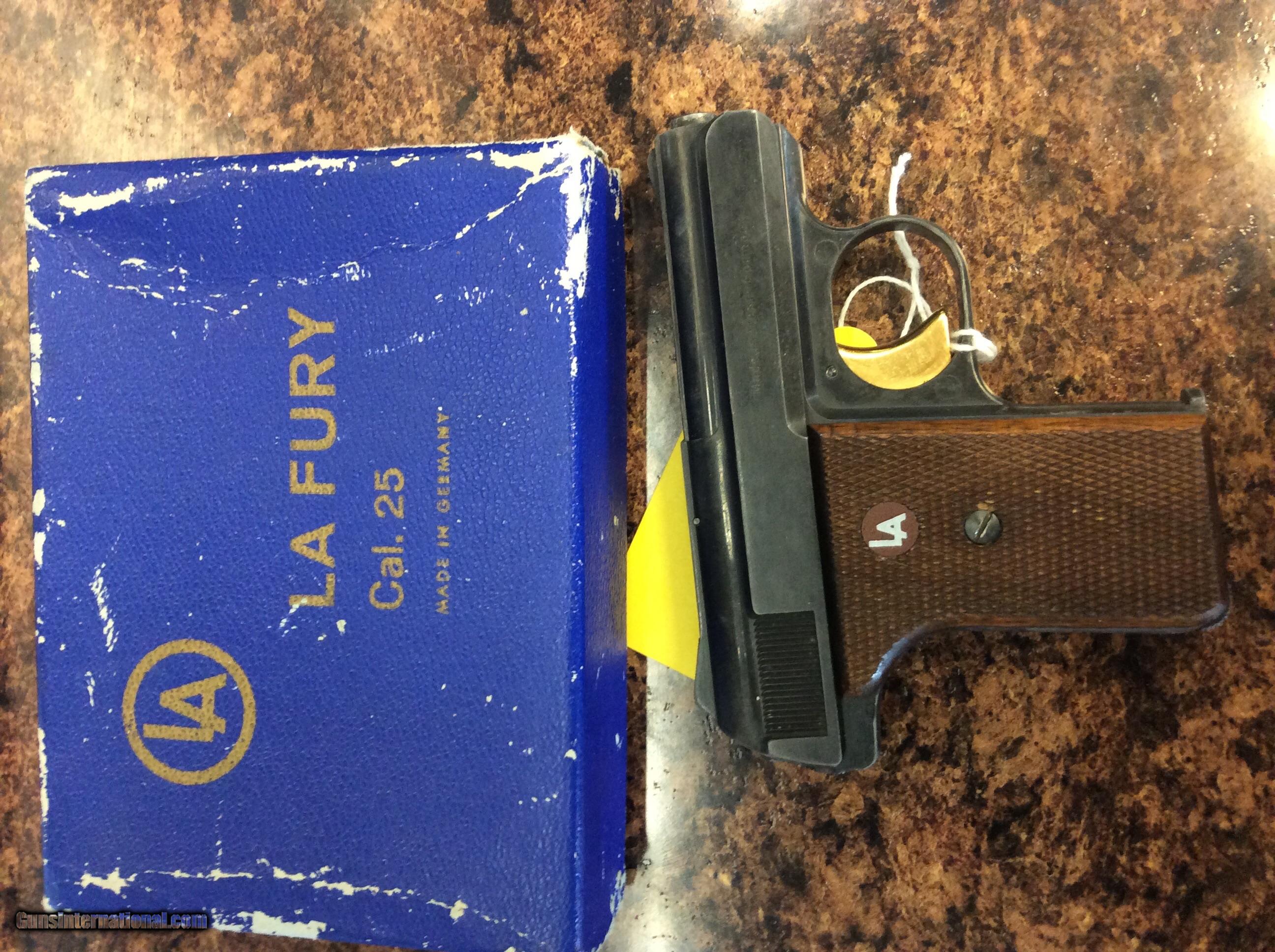 Description: Cal .25 Karl Arndt Reck Sportwaffenfabrik LA Fury with box. SOLD Manufacturer: Karl Arndt Reck Sportwaffenfabrik Model: LA Fury Caliber Info: .25 Condition: Good Metal Condition: Good Wood Condition: Good Manufacture Date: 1955-1965 |