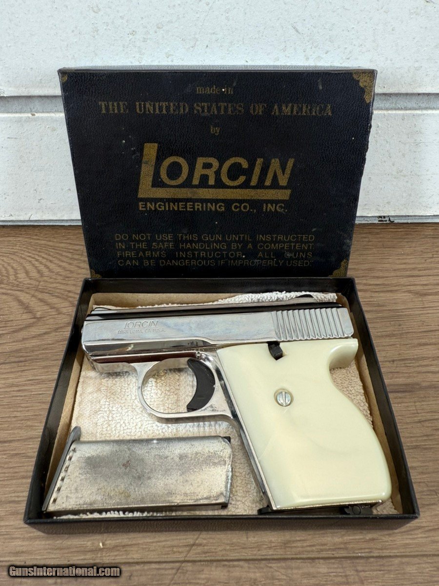 Description: Guns Listing ID: 587854 PISTOL: LORCIN MODEL L-25, SERIAL NUMBER 112233, SEMI - AUTOMATIC, 25 AUTO, NICKEL, YES - INCLUDES ORIGINAL BOX,TWO 6 ROUND MAGS, 2.5\" BARREL, USED BUT IN LIKE NEW CONDITION. SOLD Manufacturer: LORCIN ENGINEERING CO Model: L-25 Caliber Info: .25 ACP Condition: Used - Non-Certified Barrels: 2.5" BARREL Action: SEMI AUTOMATIC Finish: nickel |