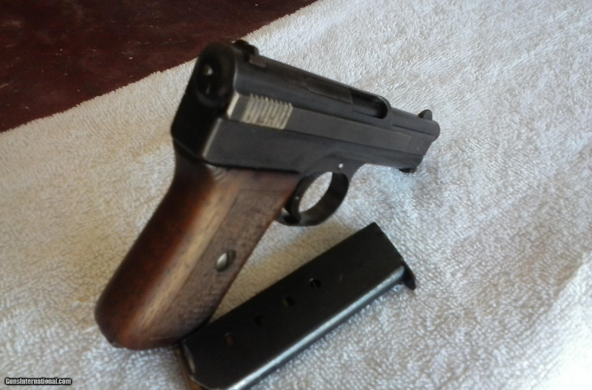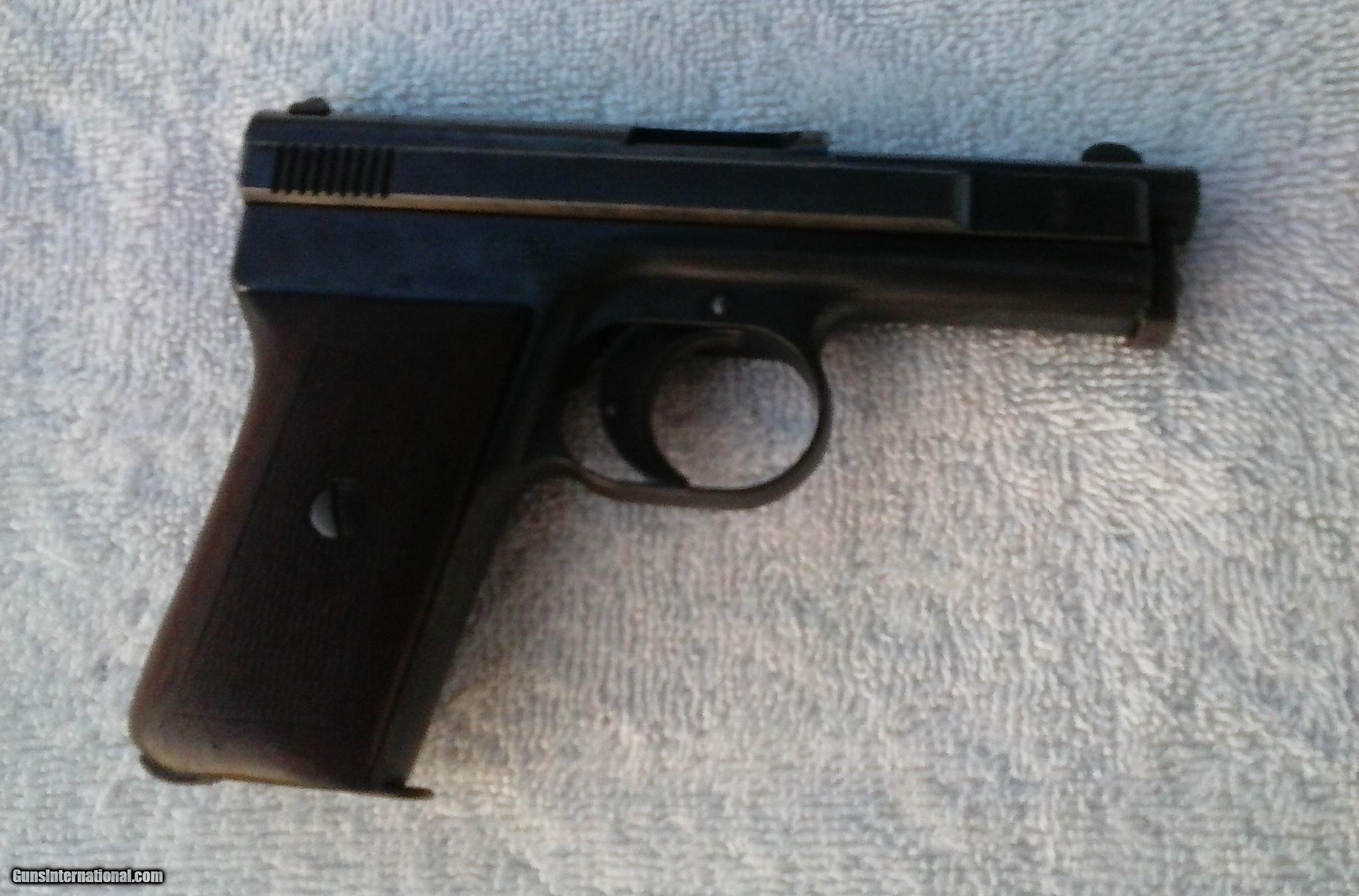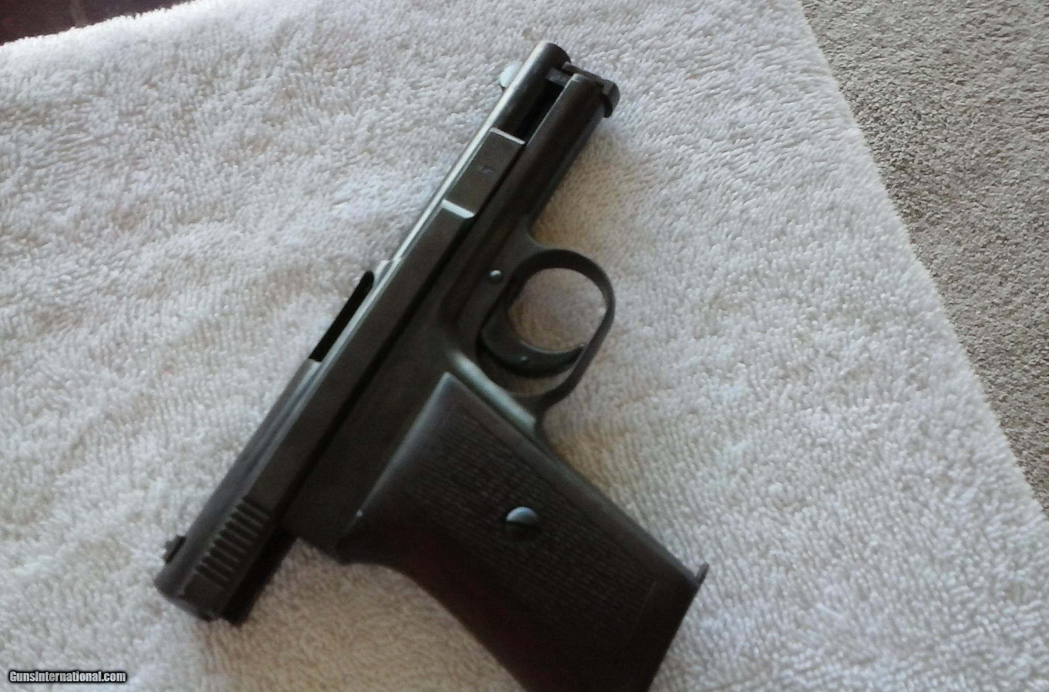 Description: MAUSER 1910 POCKET PISTOL,SIDELATCH, .25, Excellent Bore, Grip, Metal, And Matching Early Serial # 5092 . Considered Early To 50,000. Test Fired. Bill 321 777 3322 SOLD Curio/Relic: Yes Manufacturer: Mauser Model: 1910 pocket pistol Early Sidelatch Serial Number: 5092 Caliber Info: .25 Bore: excellent Chambers: excellent Condition: excellent Metal Condition: excellent Wood Condition: excellent Bore Condition: excellent Action: semi auto Triggers: excellent Item Location: Satellite Bch Fl |