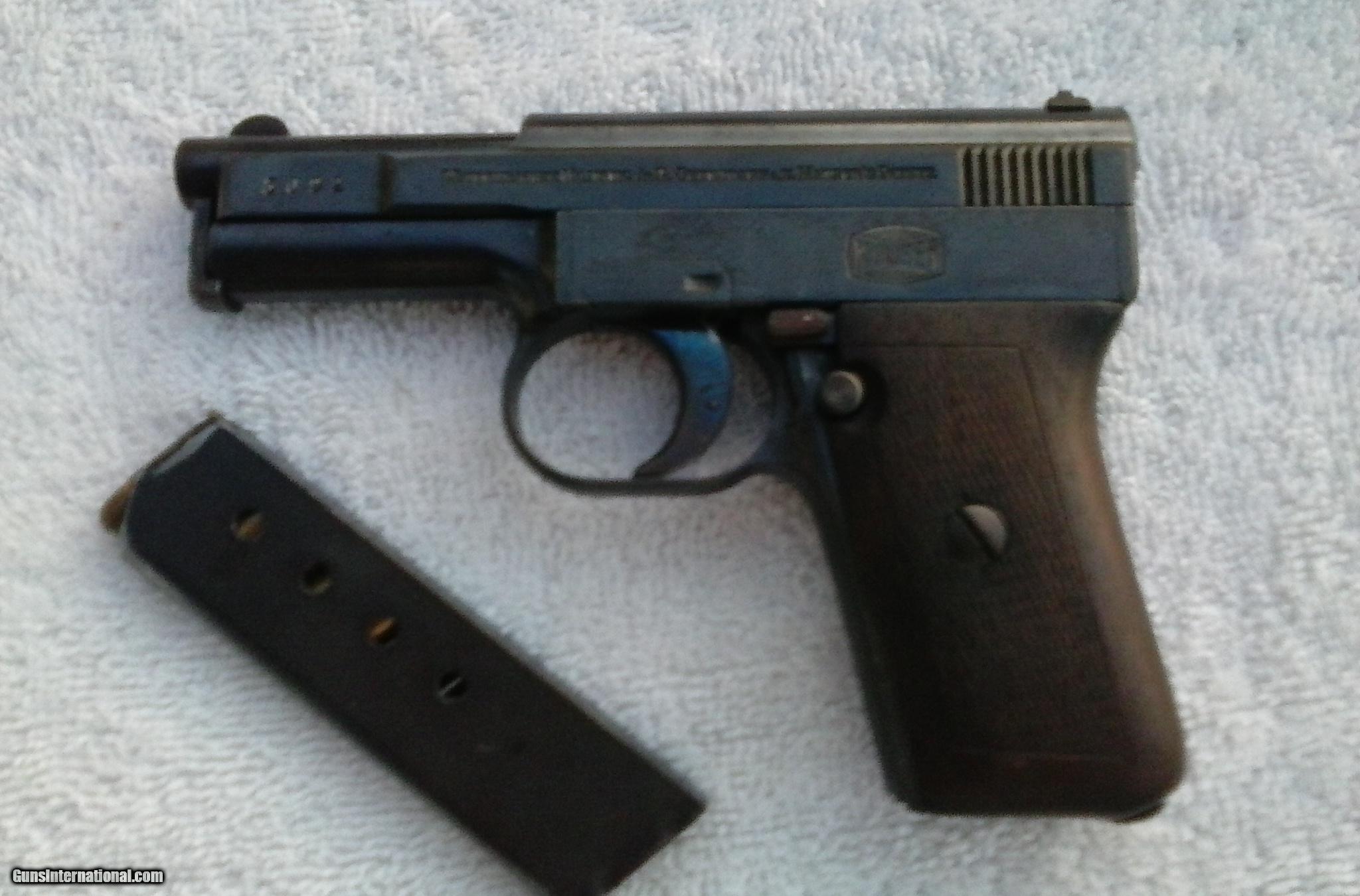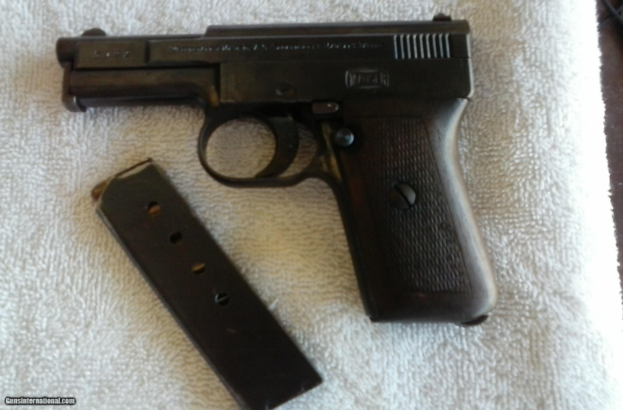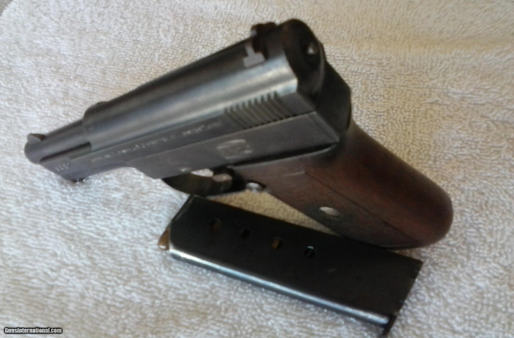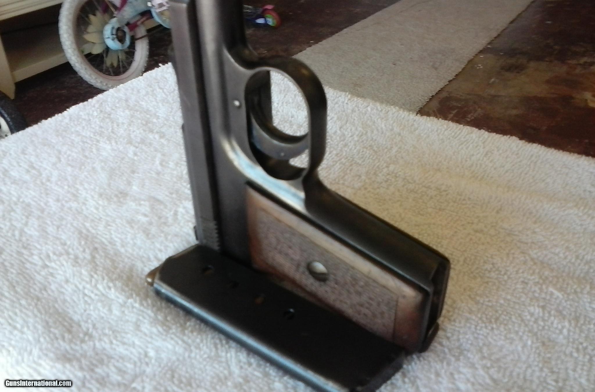 Description: MAUSER 1910 POCKET PISTOL,SIDELATCH, .25, Excellent Bore, Grip, Metal, And Matching Early Serial # 5092 . Considered Early To 50,000. Test Fired. Bill 321 777 3322 SOLD Curio/Relic: Yes Manufacturer: Mauser Model: 1910 pocket pistol Early Sidelatch Serial Number: 5092 Caliber Info: .25 Bore: excellent Chambers: excellent Condition: excellent Metal Condition: excellent Wood Condition: excellent Bore Condition: excellent Action: semi auto Triggers: excellent Item Location: Satellite Bch Fl |