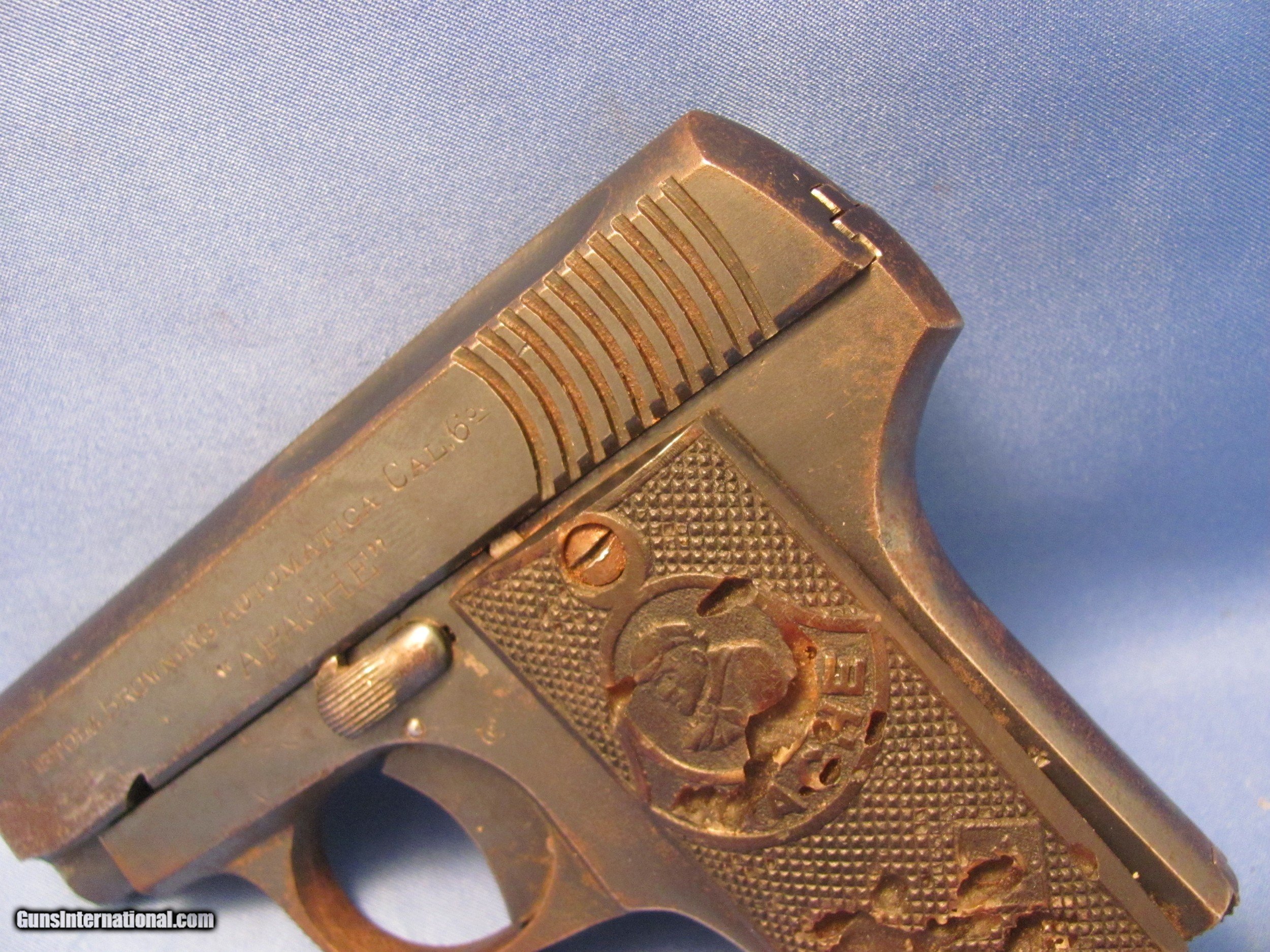 Description: THIS IS A VERY RARE OJANGUREN APACHE “PUPPET” VIDOSA 6.35mm 25ACP SEMI AUTO PISTOL 3 DIGIT SER # THE METAL FINISH IS ALMOST A RUST PLUMB BROWN WITH SLIGHT PITTING THE HORN GRIPS ARE WORN AND WORM EATEN THE BORE OF THE 2” BARREL IS BRIGHT, SHINY EXCELLENT AND AT LEAST 95% AS SHOWN IN THESE MANY CLOSE UP PICTURES WITH NOTHING ELSE. DUE THE FAST PACE AND VOLATILITY OF THE CURRENT GUN MARKET THERE IS NO INSPECTION PERIOD OFFERED OR GIVEN SO BUY KNOWING THAT A CURIO OR STANDARD FFL WILL WORK BUT UNDERSTAND THAT WE WILL PUT A SIGNATURE ON THE PACKAGE SO IT WONT GET LEFT ON A PORCH BUYER PAYS A FIXED AMOUNT OF 25.00 INSURED SHIPPING TO THE LOWER 48 MAINLAND STATES, ALASKA, HAWAII OR PUERTO RICO NO SHIPMENTS OUTSIDE THE USA. MISSOURI RESIDENTS DO PAY A 8.575% SALES TAX. NO EXTRA CHARGE FOR CREDIT CARDS. BRANDON'S GUN TRADING CO LLC 321 EAST 20TH ST JOPLIN MO. 64804 (417)-623-8787 FAX (417)-623-2326 9-5 TUESDAY-SATURDAY CENTRAL TIME WE ARE ALSO CLOSED THE 1'ST SATURDAY OF EVERY MONTH AND HOLIDAYS. INVENTORY REFERENCE: CC1114 PLEASE NOTE, UPS SERVICE HAS GOTTEN SO BAD UNDER CURRENT MANAGEMENT THAT WE WON’T SHIP UPS UNLESS WE ABSOLUTELY HAVE TOO. WHEN WE DOUBLE PACK, INSURE, ADD SIGNATURE, USE GOOD BOXES AND UPS EVEN NOTES THEY DAMAGED THE ITEM AND THEY STILL WONT PAY. ALSO, ANY INSURANCE WE DO PUT ON OUR PACKAGES IS VOID IF YOU OR YOUR DEALER THROWS AWAY THE BOX, ANY PACKING MATERIALS OR FAILS TO PICTURE AND NOTIFY US AND THE SHIPPING COMPANY IMMEDIATELY SOLD Curio/Relic: Yes Handgun Caliber: .25 ACP (6.35mm Browning, 6.35×16mmSR) Manufacturer: OJANGUREN Y VIDOSA Model: PUPPIT Serial Number: 991 Barrel Length: 2 Bore Condition: EXCELLENT Action: SEMI AUTO |