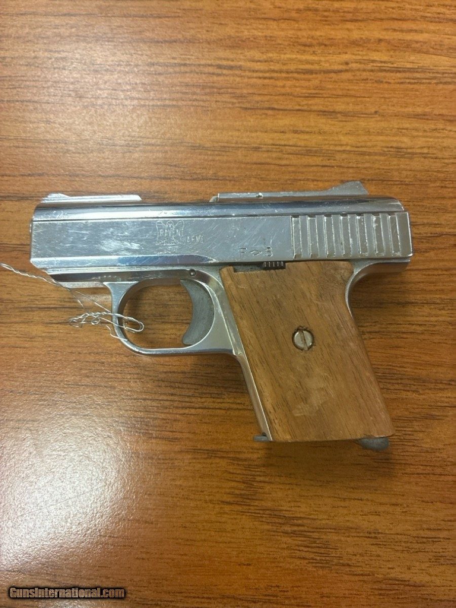 Description: Guns Listing ID: 603057 PISTOL: RAVEN ARMS MODEL P25, SERIAL NUMBER 561507, SEMI - AUTOMATIC, 25 AUTO, NICKEL, CASE NOT INCLUDED, 2.5 Manufacturer: RAVEN ARMS Model: P25 Caliber Info: 25 Auto Condition: Used - Non-Certified Barrels: 2.5" BARREL Action: SEMI AUTOMATIC Finish: Nickel Price: $100.99 Contact Seller |