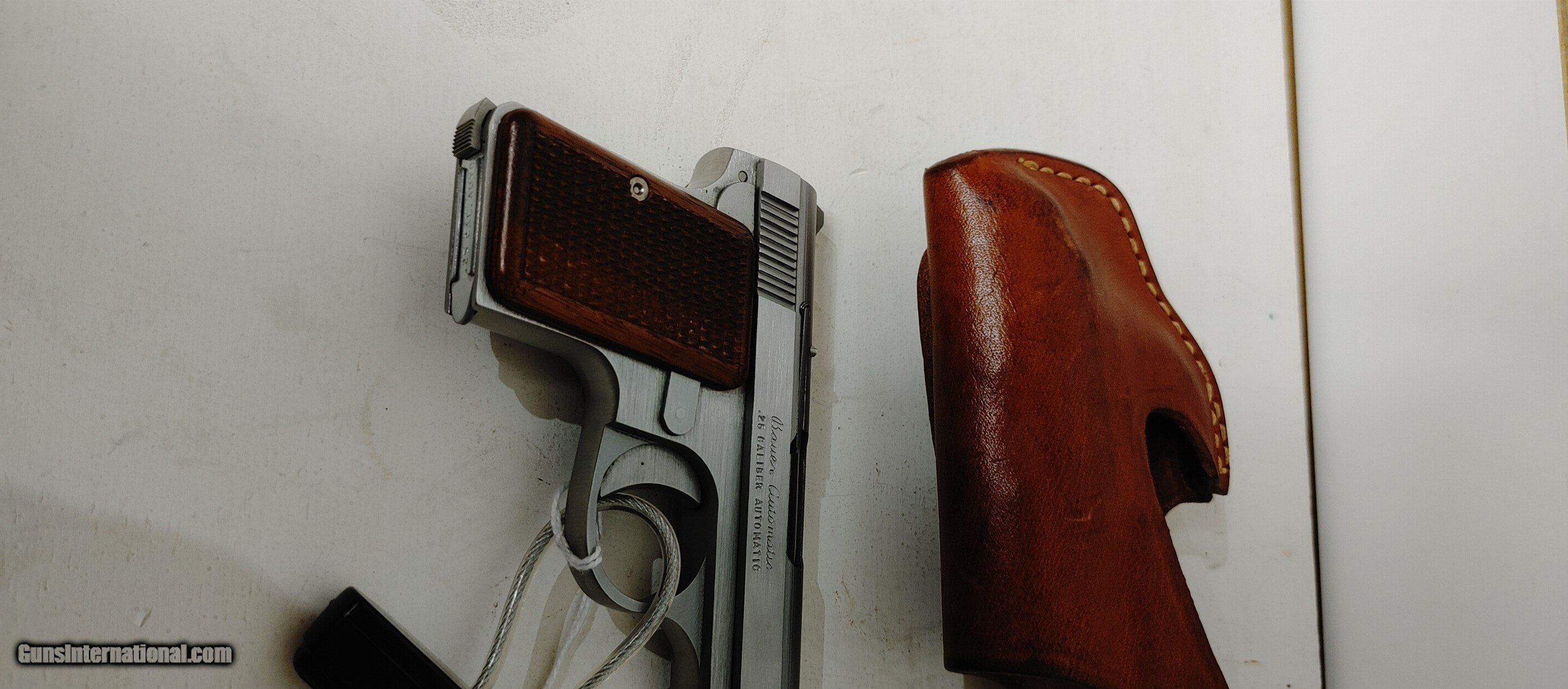 Description: Used Bauer 25 Auto 2" barrel silver with brown grips good condition manual safety Buyer pays shipping Millers Gun Center Located in New Castle, Delaware "Home of TAX-Free shopping" No Credit Card Fees SOLD Serial Number: 058380 |