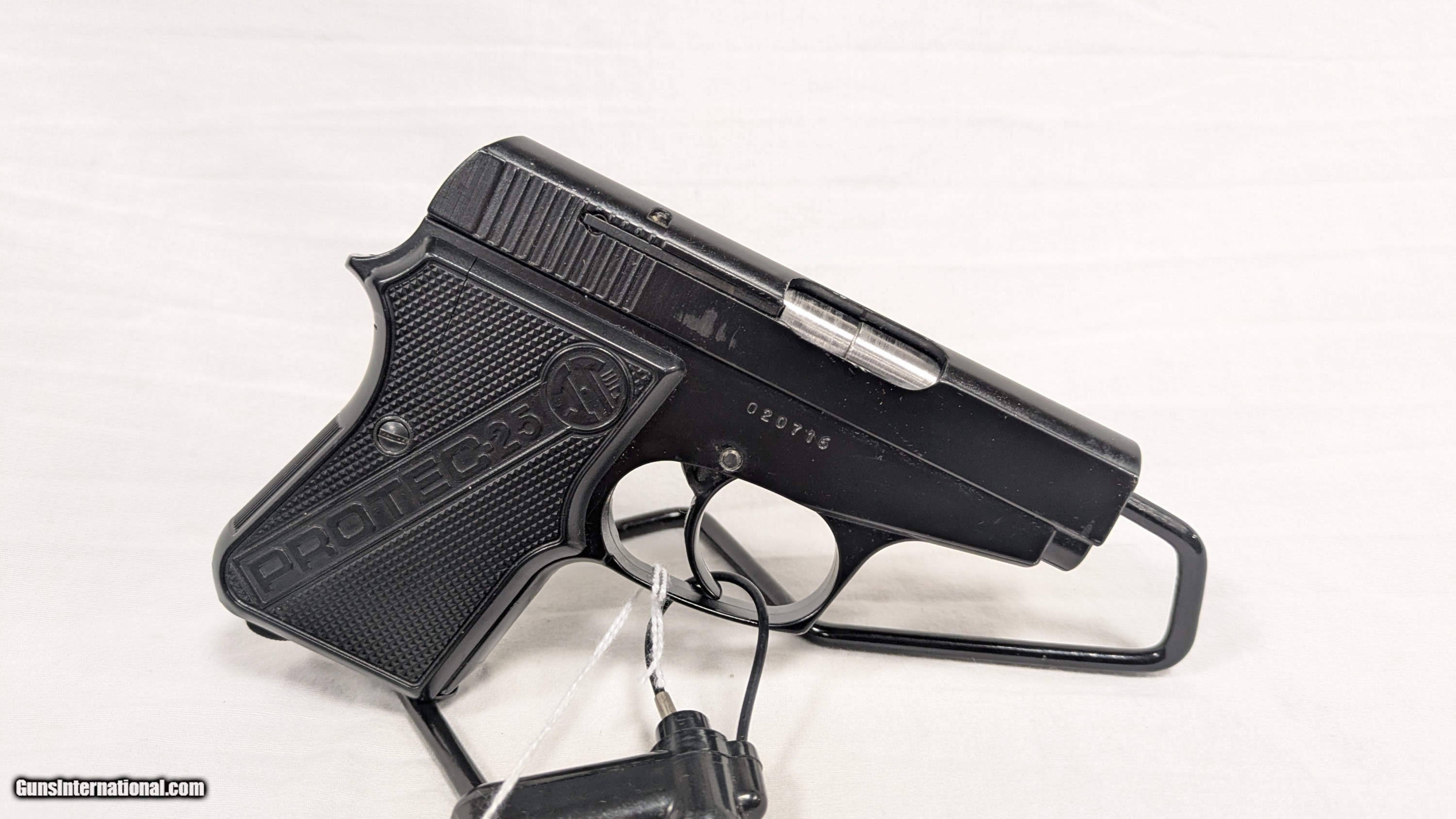 Description: This is a used item. While we do not test fire our used firearms, we perform an inspection and function check to determine the firearm is fully functional to the best of our ability. Please call with any questions. If you are interested in purchasing this item, please give us a call. Please have the "Seller #" and/or "Guns International #" ready along with the contact information for the FFL you'd like the item shipped to. For Sale from First State Firearms of Delaware AKA "The Gun Shop" in New Castle, DE. Shipping is $40.00. Includes $100.00 in shipping insurance. Additional insurance available at buyer's expense and request. SOLD Handgun Caliber: .25 ACP (6.35mm Browning, 6.35×16mmSR) Manufacturer: INTRATEC Model: PROTEC 25 Serial Number: 020716 Condition: USED, 98% Action: SEMI-AUTO Extras: X2 SPARE MAGAZINES Case: BOX/CASE INCLUDED |