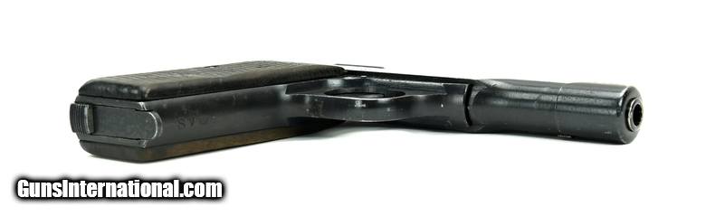 Description: FN 1922 .32 ACP caliber pistol. Gun has German Waffenamts. WWII German Army issue after the FN factory fell to the Germans. Bore is near excellent. Gun has near 95-97% original blue. Grips are good plus with some isolated nicks. Action works perfectly. Note: There are two very small spots where some marking (probably West German “Vopo” police issue post war mark) has been expertly removed. These “removal” marks are often seen on P38s and pocket autos such as this 1922. SOLD |