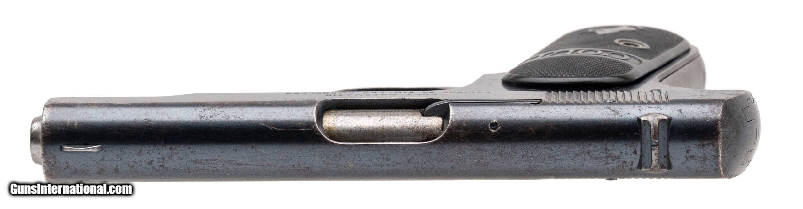 Description: "SN: 271905 made in 1918. Semi-auto pistol chambered in 32 auto with a 3.5" barrel, original bakelite grips and original “two-tone" Colt marked magazine. Overall condition is good for its age, some patina throughout but most of the original bluing is still present, bore is frosted with visible rifling. Dallas Location Curio/Relic: Yes Price: $799.95 Contact Seller |