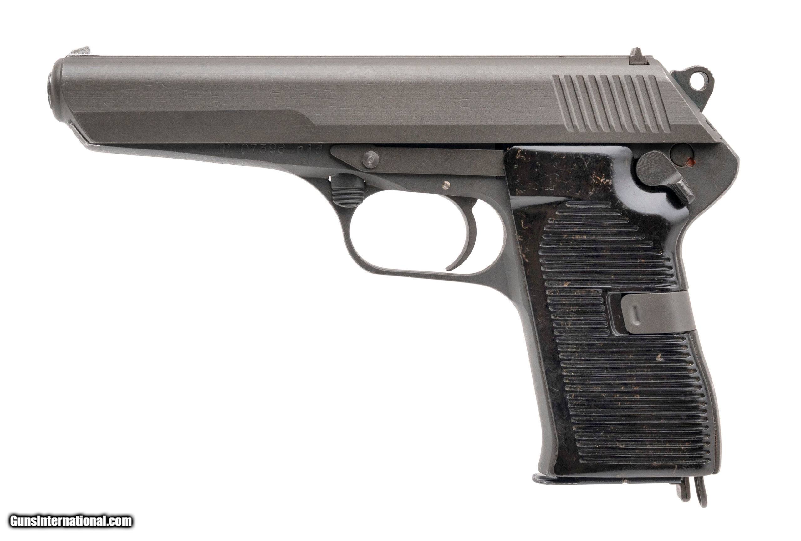 Description: "SN: D07398 made in 1954. Semi-auto Czech Republic military issued pistol chambered in 7.62x25 with a 5" barrel, parkerized finish, bakelite grips and original 8 round magazine. Overall in very good condition with only some very light wear and the bore is excellent. Dallas Location Curio/Relic: Yes Price: $429.99 Contact Seller |