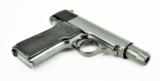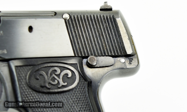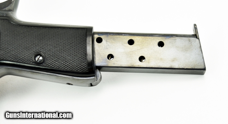 Description: Walther 4 7.65mm caliber pistol. Beautiful model 4 with crown H proof. Excellent bore. This pistol has a fine commercial quality finish and was probably a late production gun. Almost all of the model 4’s have a subdued rust blue. This gun has a very beautiful Polish dip blue. (Factory Done.) Grips are perfect. Gun has 99% original blue. Not refinished.