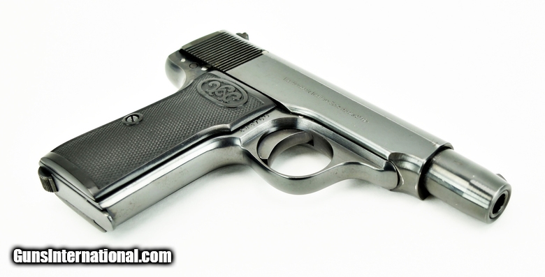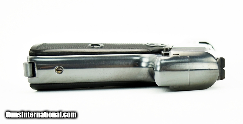 Walther 4 7.65mm caliber pistol. Beautiful model 4 with crown H proof. Excellent bore. This pistol has a fine commercial quality finish and was probably a late production gun. Almost all of the model 4’s have a subdued rust blue. This gun has a very beautiful Polish dip blue. (Factory Done.) Grips are perfect. Gun has 99% original blue. Not refinished.