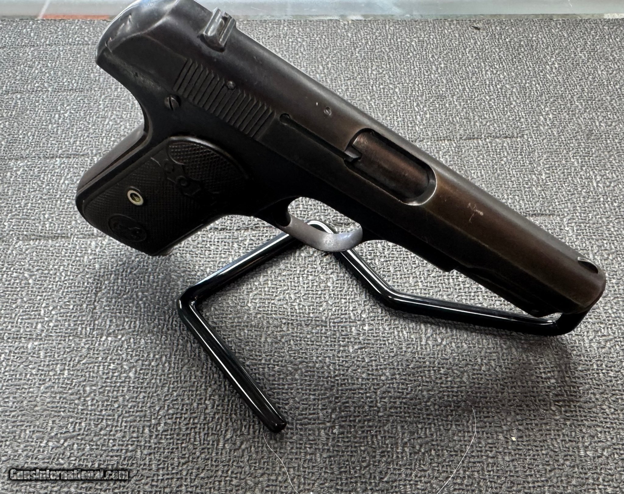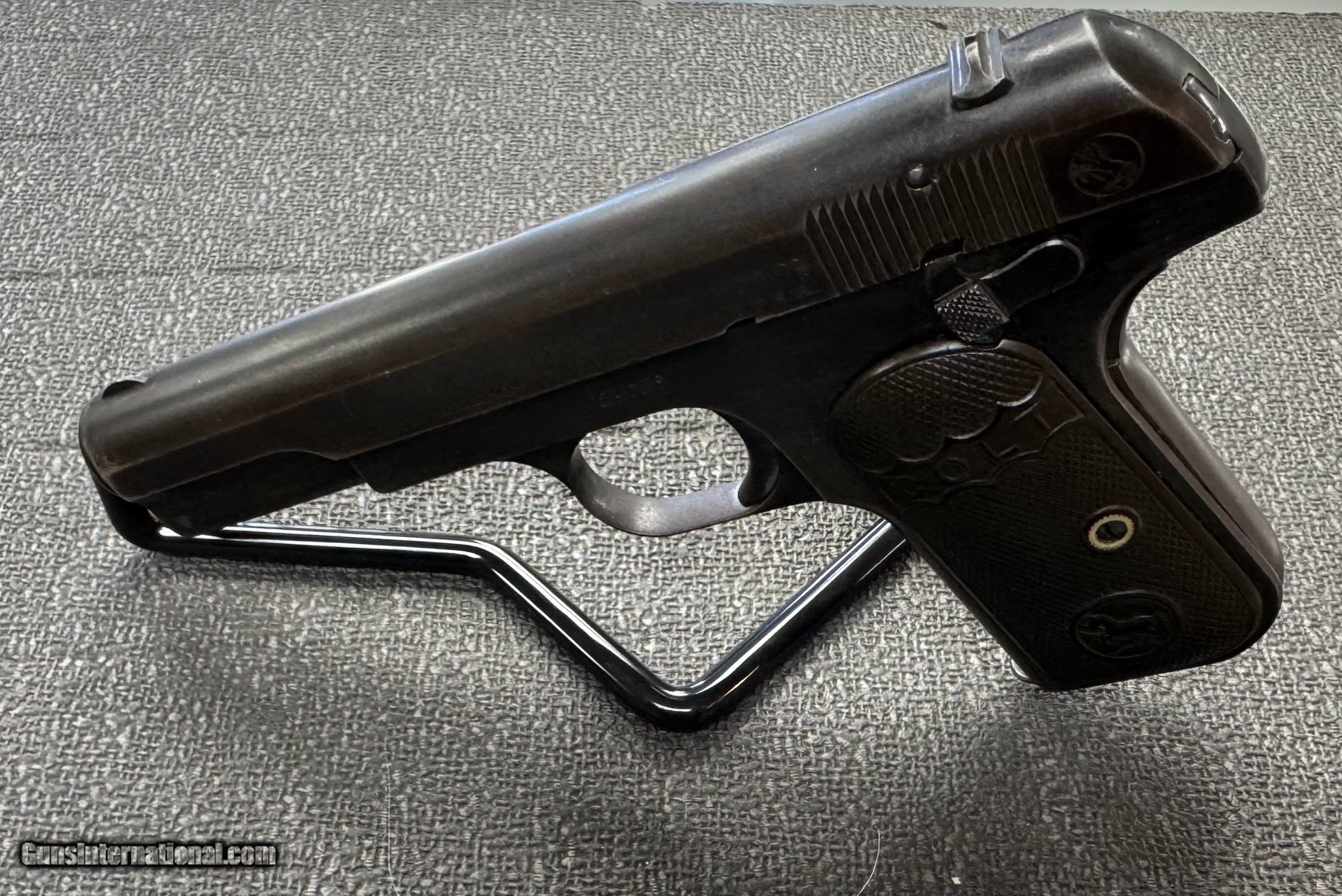Description: Guns Listing ID: 610847 The Colt 1903 Pocket Hammerless is a famous, compact semi-automatic pistol designed by John Browning, produced from 1903-1945, known for its sleek, concealable design, .32 ACP and reliability, becoming popular with U.S. Army general officers (like Eisenhower, Patton) during WWII and favored by intelligence agencies and figures like Al Capone for its discreet carry, featuring a hidden hammer and grip/manual safeties. Curio/Relic: Yes Manufacturer: COLT Model: 1903 Caliber Info: .32 ACP Condition: Used - Non-Certified Barrels: 4" BARREL Action: SEMI AUTOMATIC Finish: black & blued Price: $1,049.99 Contact Seller |