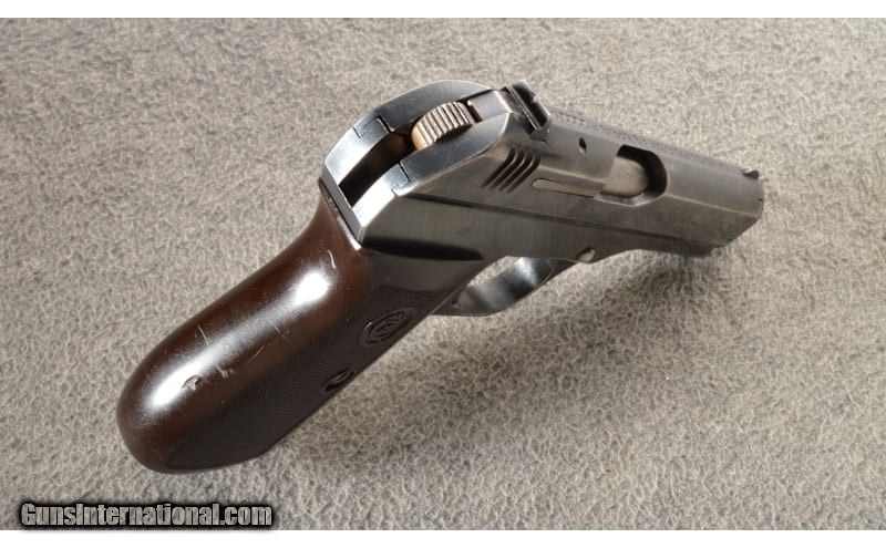 Description: The Czechoslovakian Model 1927 pistol was a simple, blowback weapon chambered in 7.65 (32acp). Designed by Frantisek Myska at the Ceská Zbrojovka arms factory, it entered production in 1927. From 1939 until 1945 all Czech arms production took place under German control. This is an example is an all blued finish from that period. The top of the slide is marked "BOHMISCHE WAFFENFABRIK A.G. IN PRAG & WaA76 and 111124". The left side of the slide is marked "Pistole Modell 27 Kal. 7,65". The left side of the frame and rigth front is marked "111124". The right frame is marked "WaA76". The top of the barrel at the chamber area is marked with an eagle swastika. Both magazine base plates are marked "P.Mod.27". They both renain in very good condition. Comes with an unmarked holster. 7.65MM (.32 ACP) Chambers: Semi auto. Metal Condition: Good surplus condition with various stages of finish wear. The straw component still shows color. No corrosion. Wood Condition: The plastic grips are still in very good shape with light wear. Bore Condition: Bright bore with very strong rifling. Barrels: 3.75" barrel. Triggers: Single trigger. Sights: Drift adjustable rear with a fixed front. Item Location: Owatonna, MN Price: $949.99 Contact Seller |