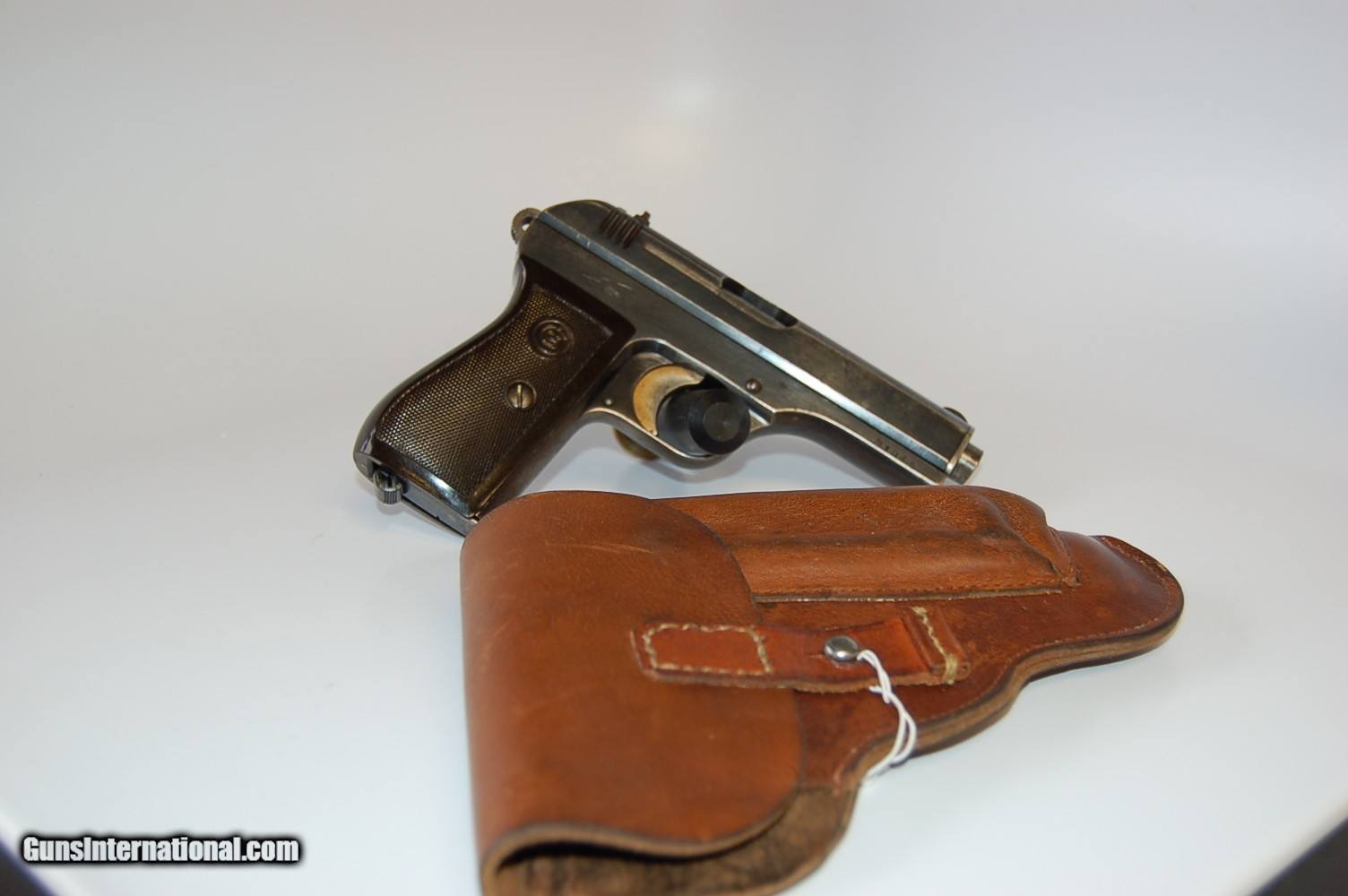 Description: We have an early production, .32 ACP, 65% blue, CZ 27 (vz. 27) pistol in okay condition. The bore is bright and shiny. The pistol shows some holster wear. Serial Number: 91,845. This is the high polish variant, made to the highest quality. The finish on early CZ 27 pistols, with serial numbers ranging from 20,500 to 230,000, was bright blue. As the production progressed, the finish changed to dull blue, then to half blue and half phosphate, and finally to all phosphate. This pistol displays a Nazi-German Military “eagle/WaA 76” WaffenAmt acceptance mark (on right frame, top slide, and barrel). The barrel is stamped with an “eagle clutching a swastika” German Military test proof mark. The top of the slide is marked “BÖHMISCHE WAFFENFABRIK A.G. IN PRAG” (?eská zbrojovka [CZ] in Prague) followed by the Nazi proof and serial number. Left side of the slide is marked “Pistole Modell 27 Kal. 7,65”. All the numbered parts are matching (right on frame, top of slide, left on side plate, and on barrel). In March 1939, Germany occupied all of Czechoslovakia, and in early 1941, all CZ 27 pistol production was diverted to the German war effort. Czechoslovak sources put the beginning serial number of German Military production at 20,500 (the serial number of our early pistol is 91,845). Between 620,000 and 650,000 CZ 27 pistols were manufactured in total, 452,500 of those under German occupation. The pistol is complete with an original factory magazine stamped on the bottom of the base “P. Mod. 27”. This pistol has the original high polish blue finish, strawed small parts (straw color is generous), and is fitted with original one piece checkered Bakelite (early plastic) good-quality grips with the “?Z” logos molded on the top. CZ 27 was one of the most widely-issued non-German pocket pistols of WW2. They are extremely well-made and overbuilt. The pistol is housed in an original leather flap holster. ://hoosierarmory/products/handguns-cz-icn8283-480 SOLD Curio/Relic: Yes Manufacturer: CZ Model: 27 Serial Number: 91845 Caliber Info: .32 Condition: used Action: single |