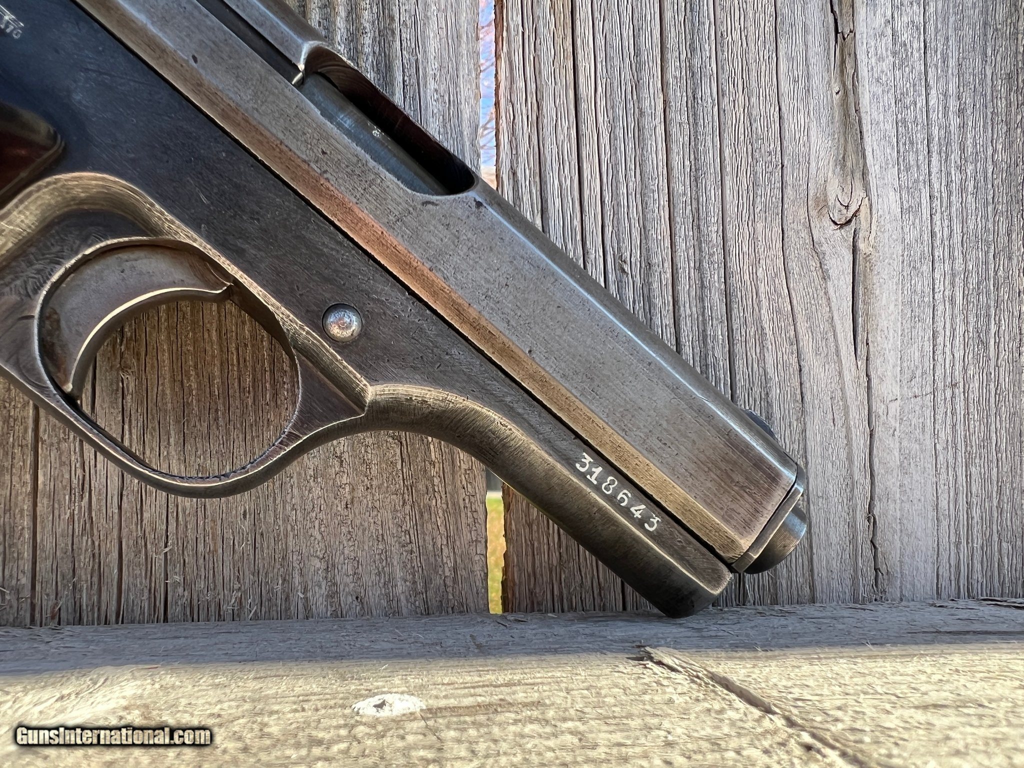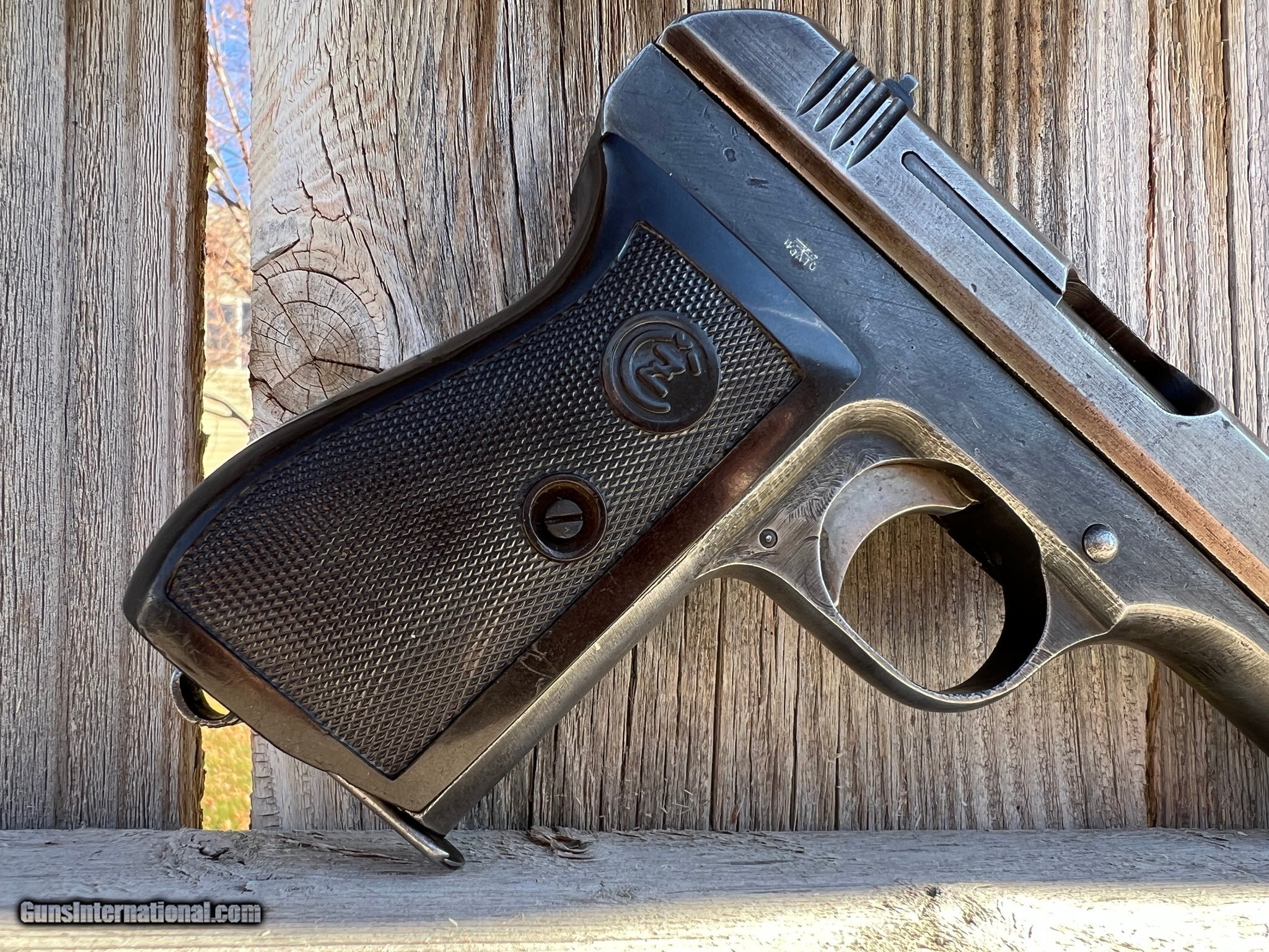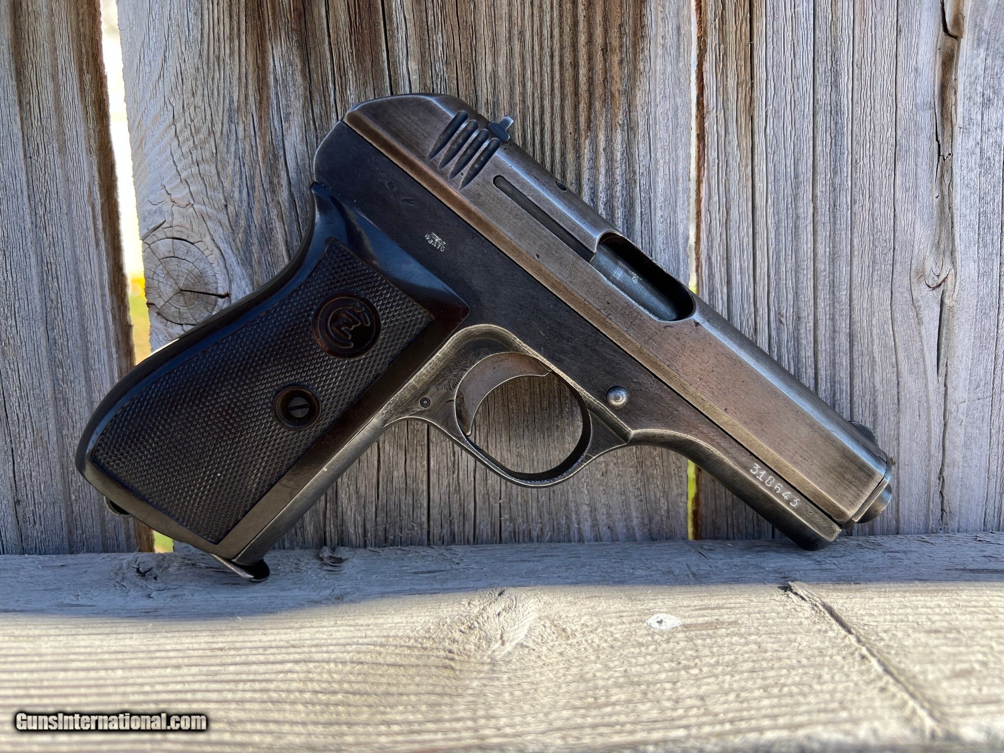 Description: Guns Listing ID: 596440 Item: CZ Model 27 Pistol (vz. 27) Caliber: .32 ACP (7.65 Browning) Manufacturer: Ceská Zbrojovka (Strakonice) Era: WWII German Occupation Production Description: This WWII-era CZ Model 27 is an example of pistols manufactured under German occupation and issued to various military and police units. The pistol features period-correct “fnh" slide markings used by Waffenamt inspectors during the time. The German acceptance mark (WaA76) is present on the frame, consistent with mid-war production. The blued finish shows honest wear typical of duty use during the 1940s. All major components appear matching, including the slide, frame, and barrel. The factory-style checkered Bakelite grips have a big chip missing but are otherwise functional. Condition (Collector Assessment): Bore: Bright with strong rifling Finish: A lot of wear, no pitting Grips: Original, tight fit, missing chip Mechanical Function: Smooth action, correct trigger pull and slide operation Markings: Clear, historically correct German acceptance and manufacturer codes Curio/Relic: Yes Manufacturer: CZ Model: Model 27 Caliber Info: .32 ACP Condition: Used - Non-Certified Barrels: 3.9" BARREL Action: SEMI AUTOMATIC Finish: black Price: $900.99 Contact Seller |