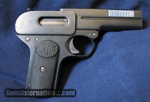 Description: On Consignment - Dreyse Model 1907 chambered in 7.65mm/32ACP. This model pistol was produced from 1907 to 1914. Barrel is 3-1/2 inches. Comes with one 8 round magazine. SOLD Curio/Relic: Yes Handgun Caliber: .32 ACP (7.65x17mm Browning SR) |